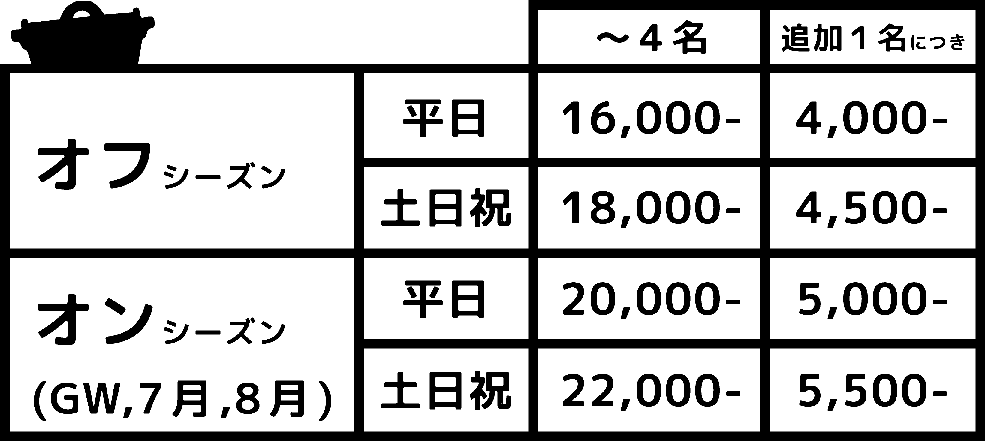 *寝具のご用意がある数です。それ以上の場合、ざこ寝枠として1名につき2,000円にて承ります。
