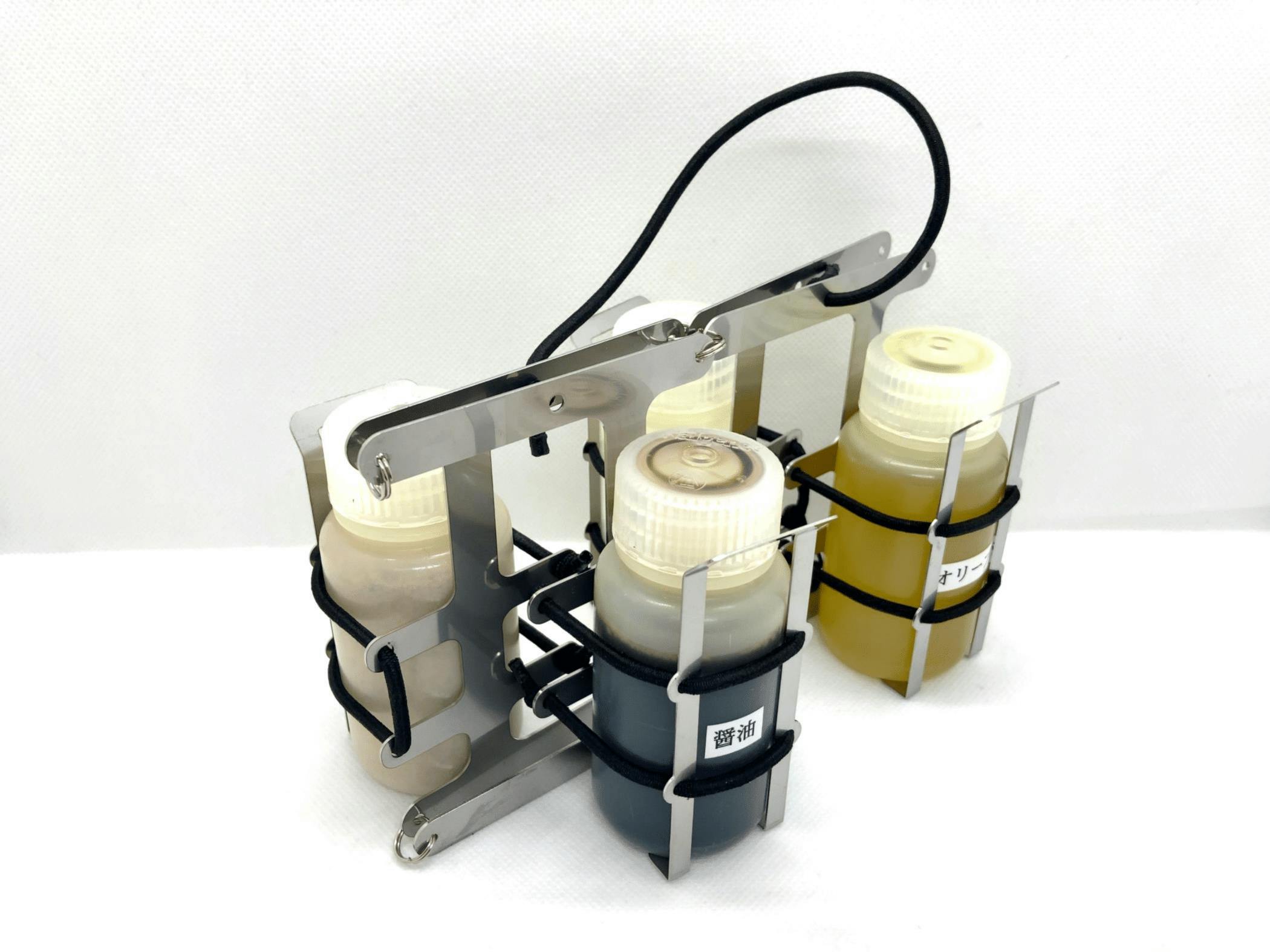 キャンプ場に持ち込んだ肉や野菜を調理して食べる際、必要な調味料を小瓶やシーズニングボトルに小分けにして持ち運ぶ方がほとんどだと思います。ですがここで問題が!
