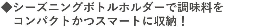 60mlのシーズニングボトル4本をコンパクトに収納。また収納状態で調味料の残量も外から確認できます。