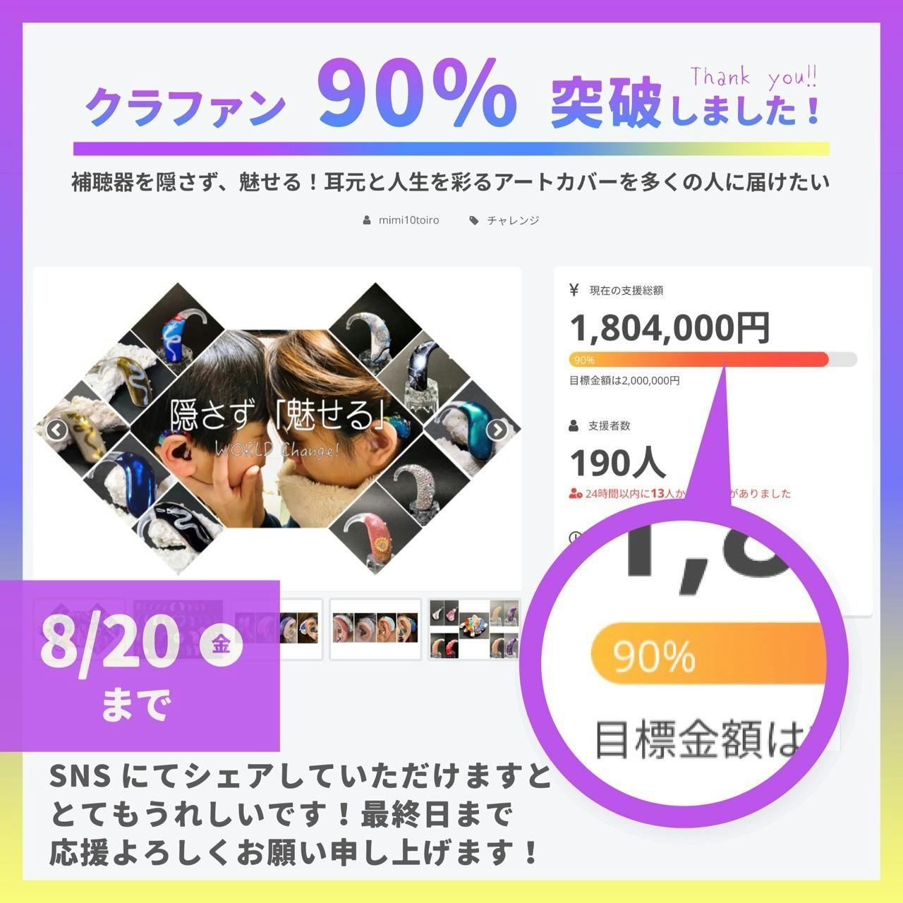 190人という多くの皆様からのご支援で目標まであと10%となりました☆