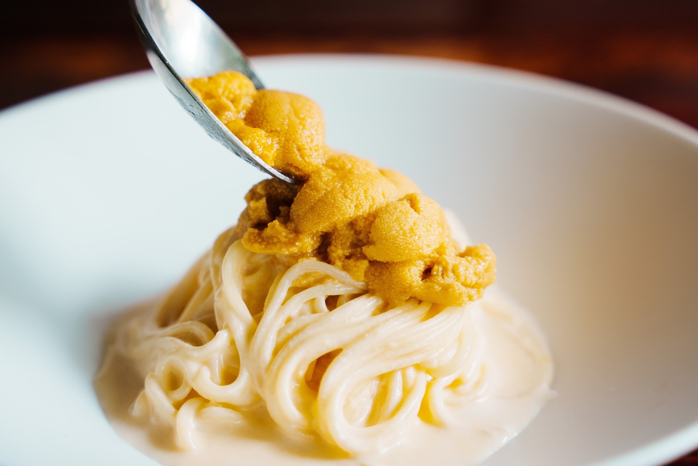 その理由は、マスカルポーネのクリーミーさと脂肪分がウニの甘みを上手に引き立ててくれるからです。