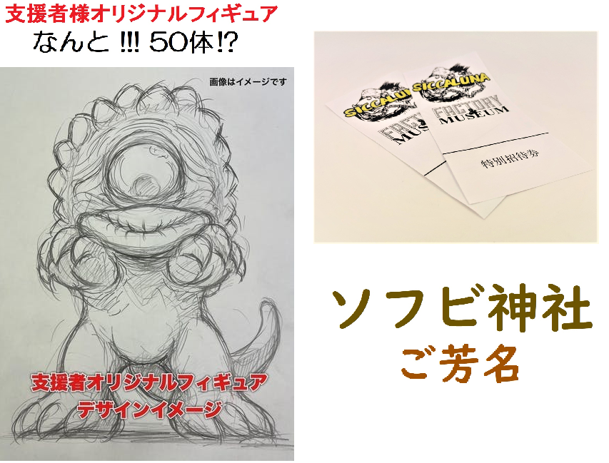『ソフビ博物館』を設立するための費用として活用させていただきます。
