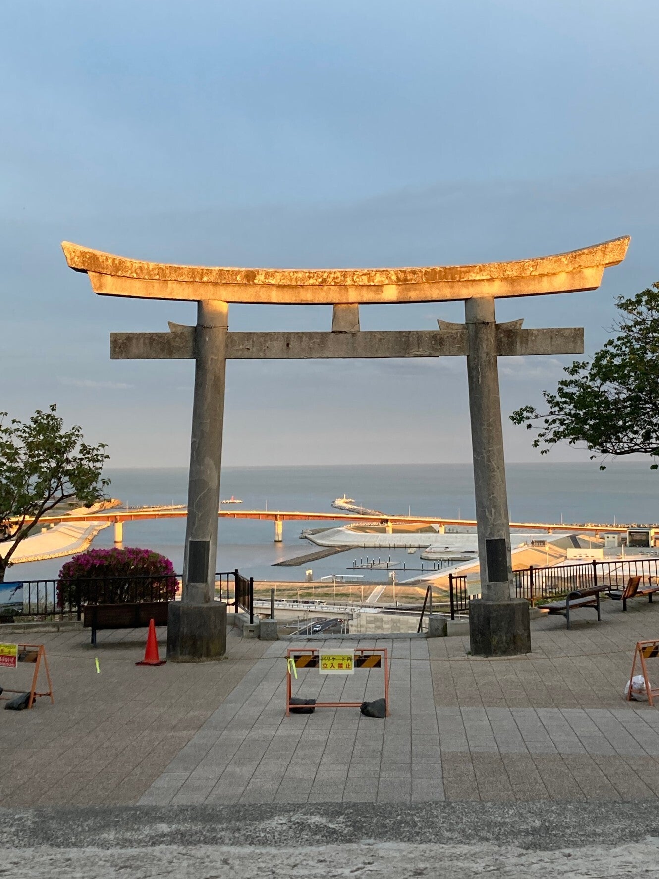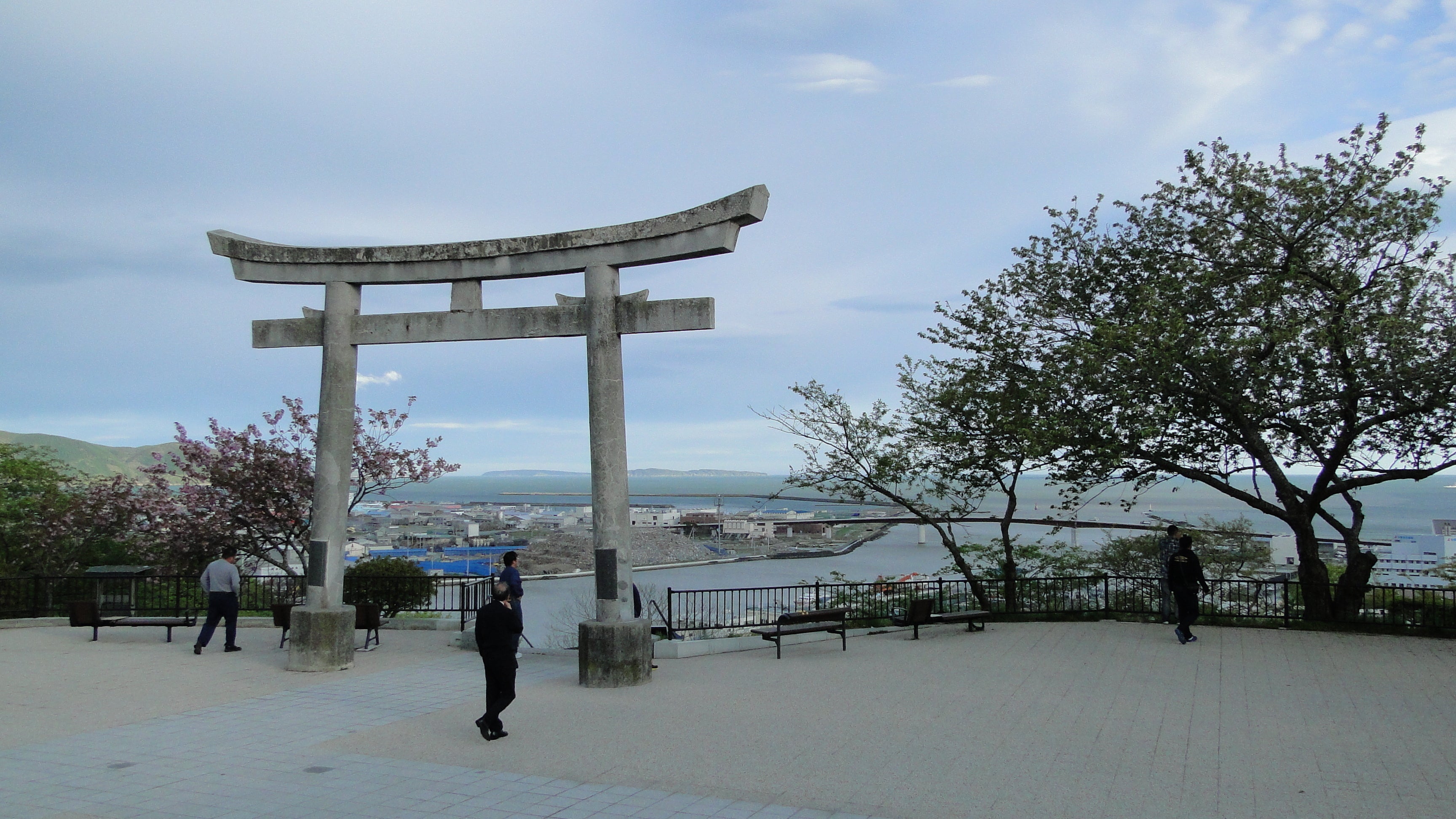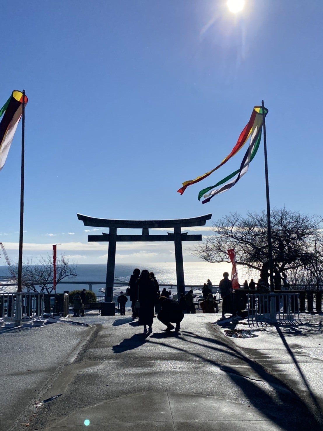 石巻に復興支援に訪れた多くに人が鳥居越しに見える海の見える素晴らしい景色を撮影しています。