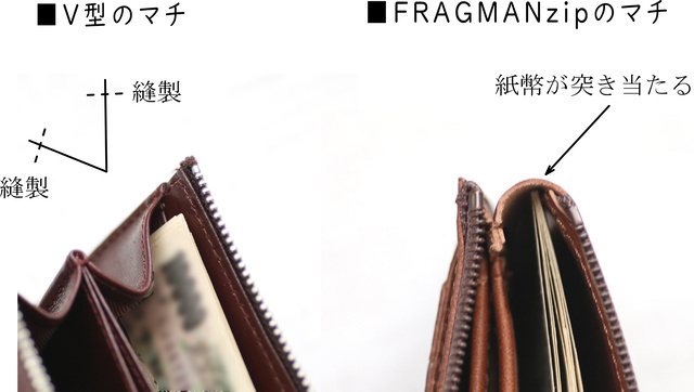 「FRAGMANzip」はこれまでの縫製技術で当たり前とされていた、いわゆる固定概念を崩すような製法を用いています。それが今回のマチ部分です。