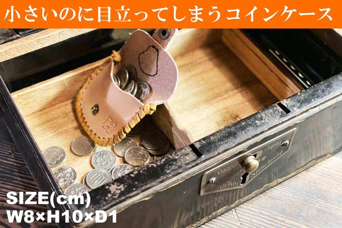 まるっこくてかわいらしいデザインのコインケースは小さいのにその存在感が溢れています。普通にコインケースとして使うこともできますが、コンタクトレンズ、お薬、SDカード、アクセサリーなど、小さなものをしまうケースとしても重宝します。お子様の一番初めの革小物、ファーストレザーとしていかがですか。