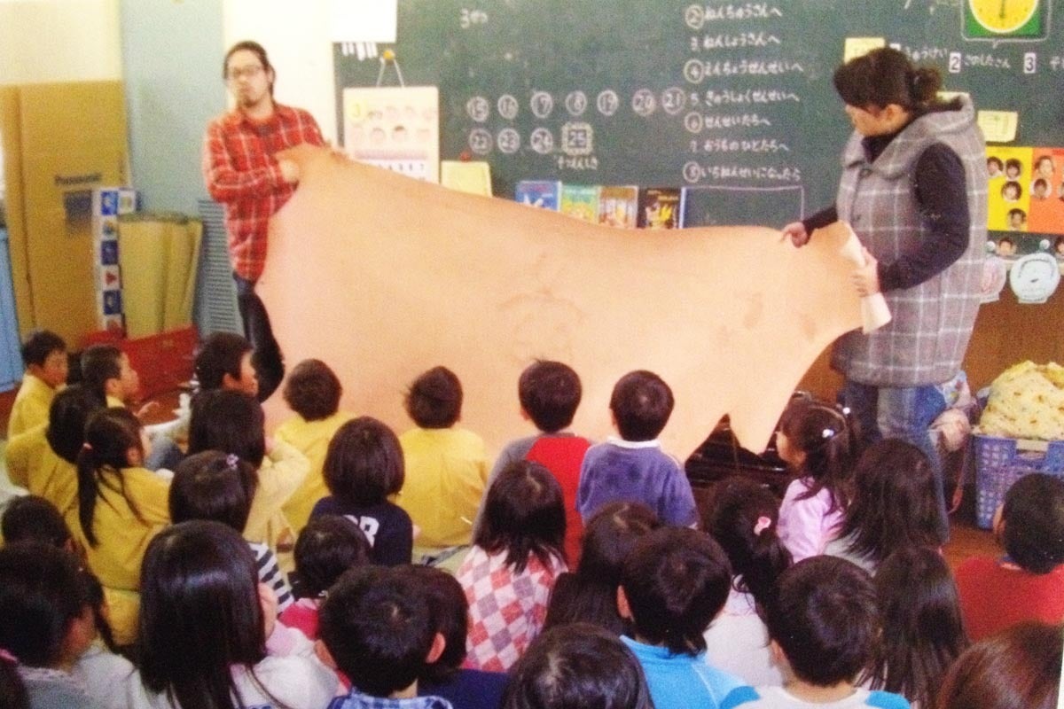 それから革職人として何か地域貢献をしたいという思いから14年前に「いただきます」「ごちそうさま」の意味を伝えながら子供たちに命の大切さを伝える「命の授業」というボランティア活動を始めました。
