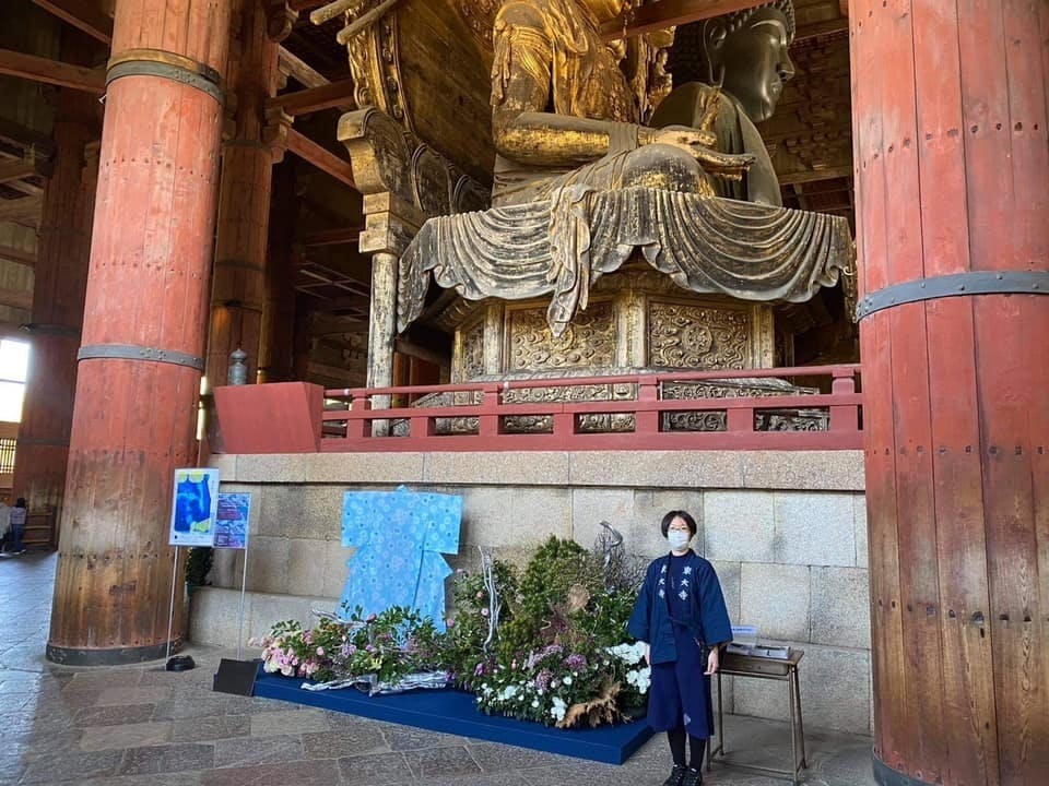 (写真は、東大寺SHIZENNECTION 2021 国宝大仏殿内 関水美穂さん 染色 着物といけばなのコラボレーション)