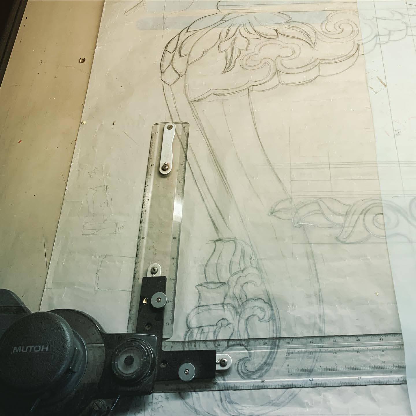 何度も線を引き直しながら、納める先のお寺に合うベストなバランスを毎度、検討してものづくりをすすめています。