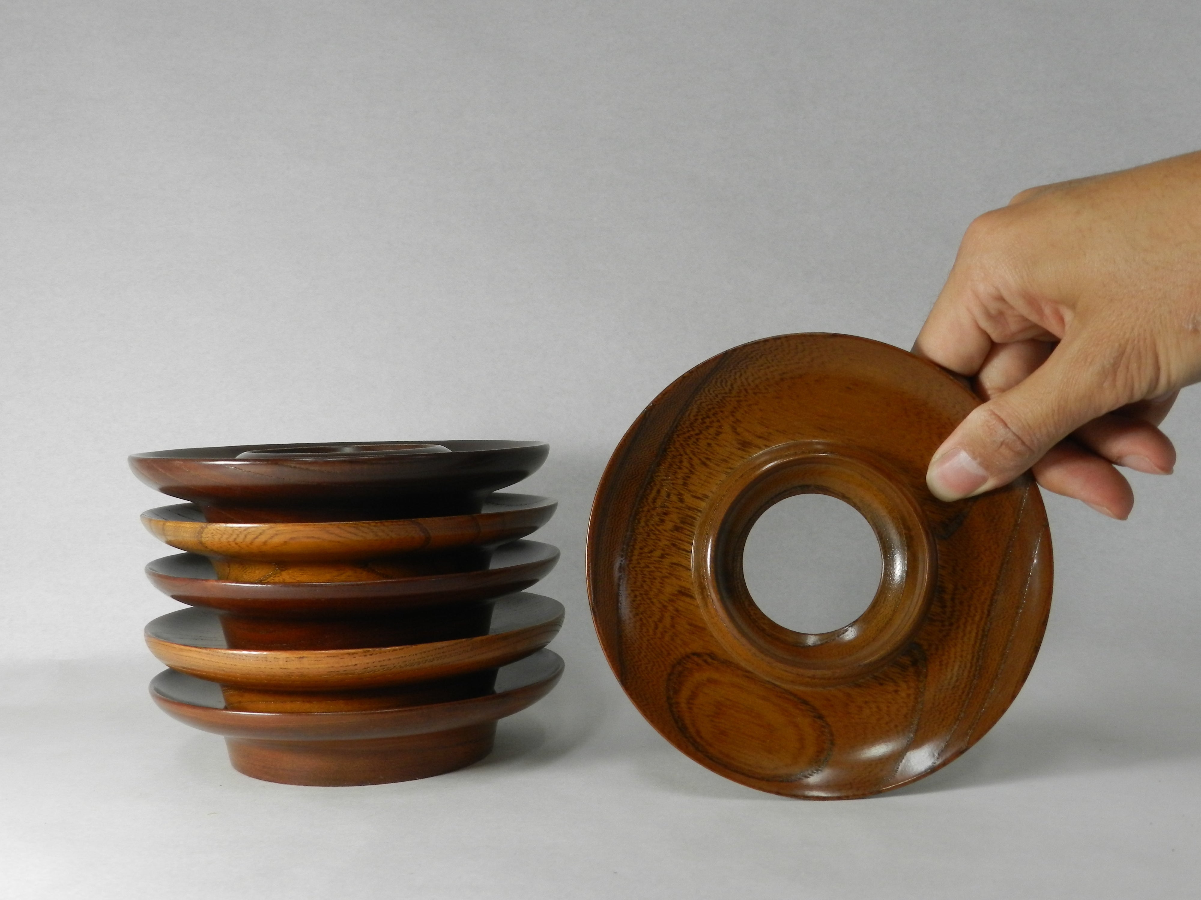 挽物(ひきもの)職人がこだわりの素材を一つ一つ丁寧に茶托の形に整形いたしました。ぜひ手に取っていただき、この贅沢な逸品を堪能していただければ嬉しいです。