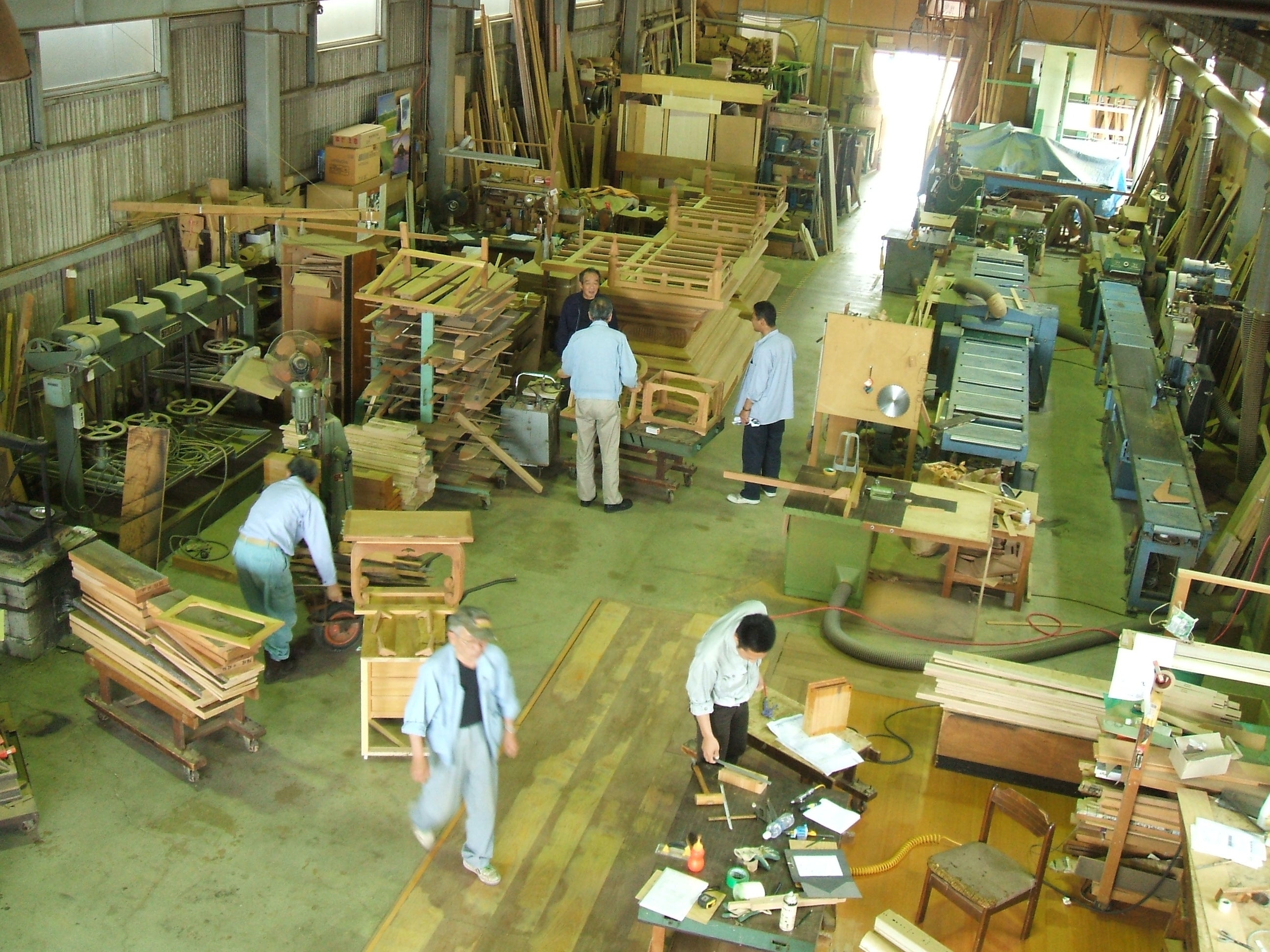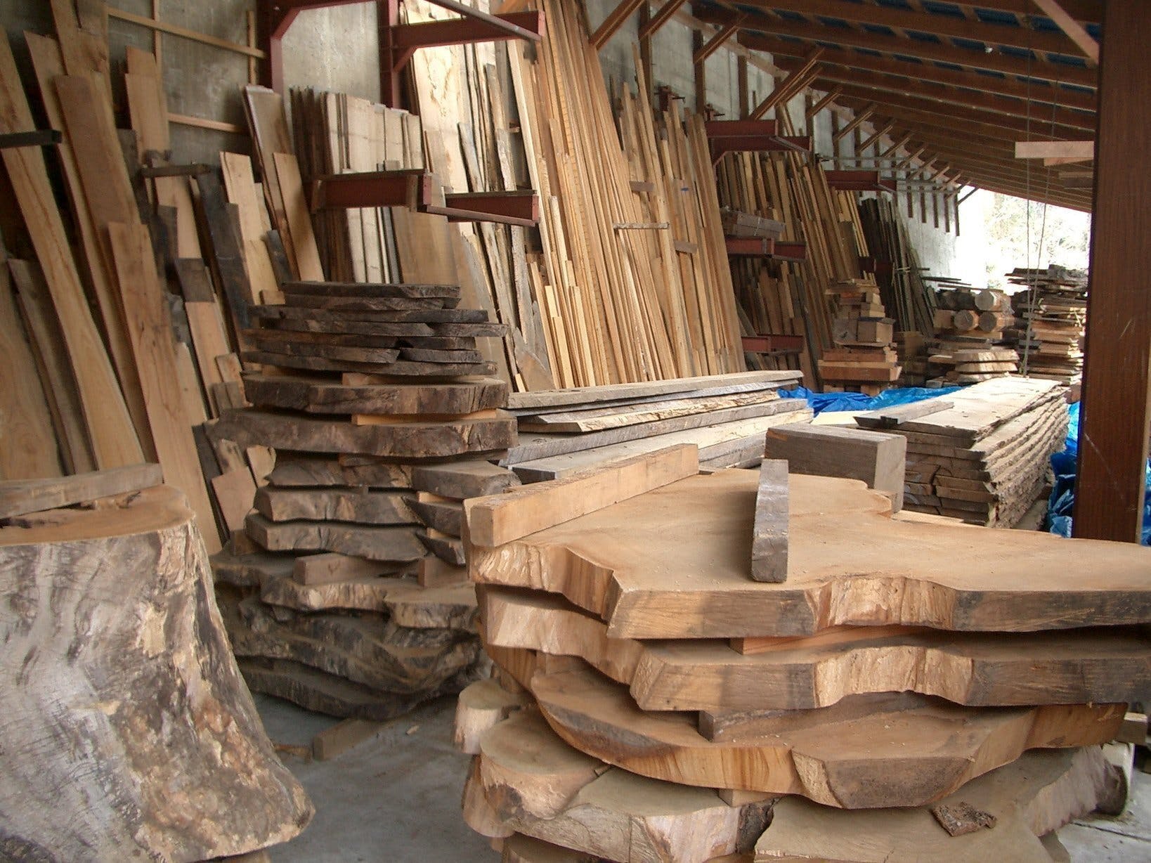 原木を数年寝かして製材し、天然乾燥させてからから材料として使っています。(欅(けやき)であれば少なくとも10年以上乾燥させる)