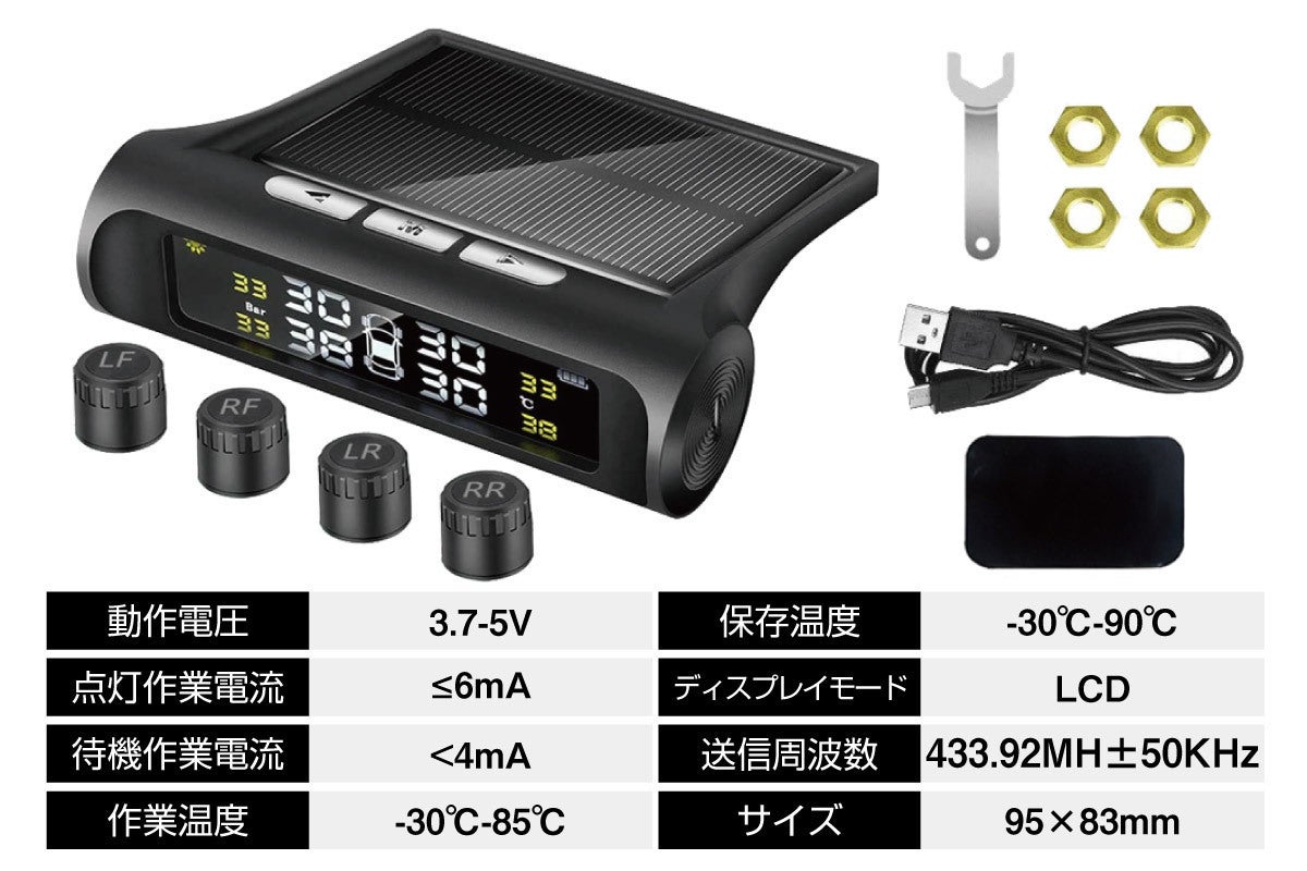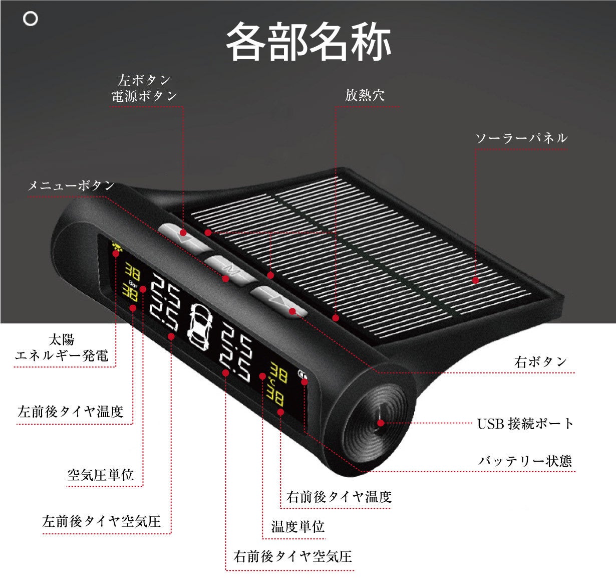 【空気圧・温度をリアルタイムで監視】【6段階アラーム通知】 【スペアタイヤも対応】・【簡単設定】