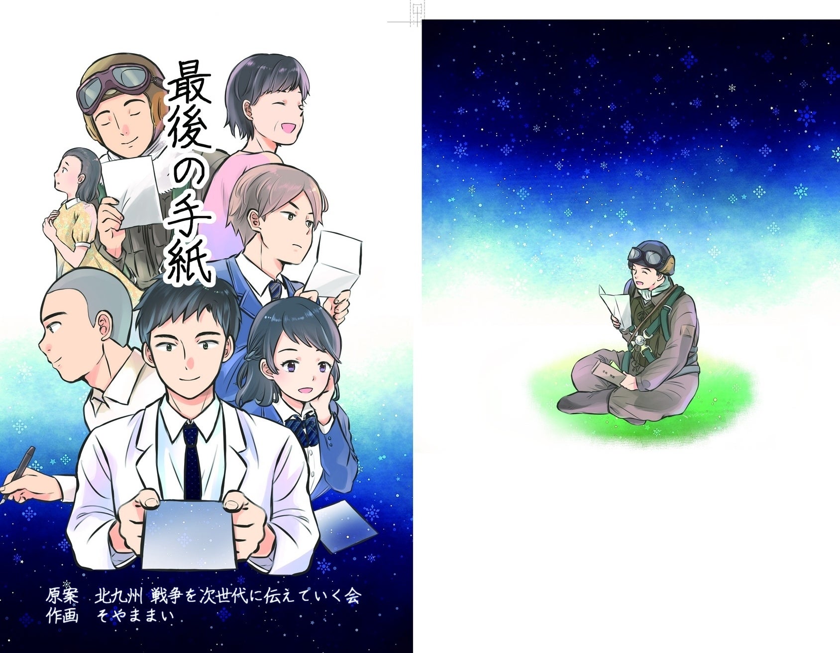 はじめまして、「北九州 戦争を次世代に伝えていく会」と申します。ページをご覧いただきありがとうございます。漫画を通して戦争を学生や若者に伝えていくという活動をしています。会の目的としては2つあり、一つは学生たちが先の大戦で国を護る為に戦われた方々の戦争体験にも触れる機会を作りたい。2つめは平和学習の時間を大人の意見の押しつけだけでなく、平和学習を通して“今をどう生きるか?”を考えるような時間にして欲しいという目的をもっています。