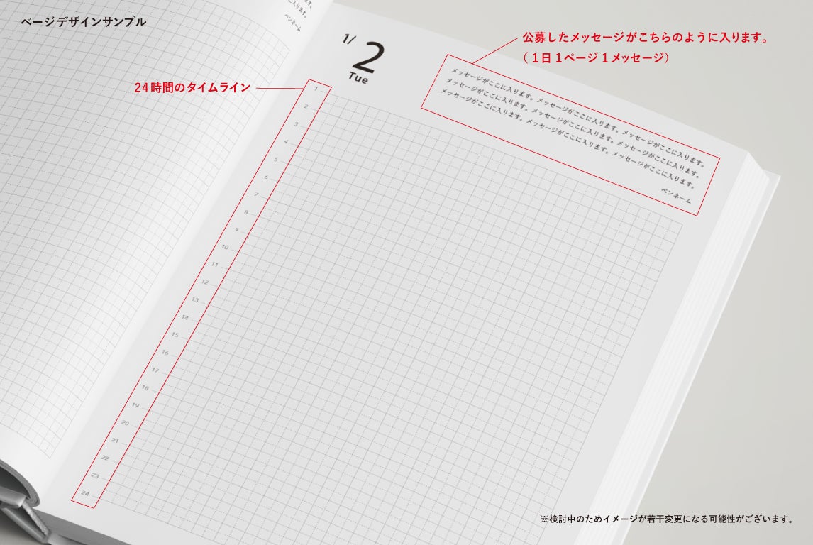 「Positive Diary」の各日ページにあなたのポジティブメッセージを記載させて頂きます。