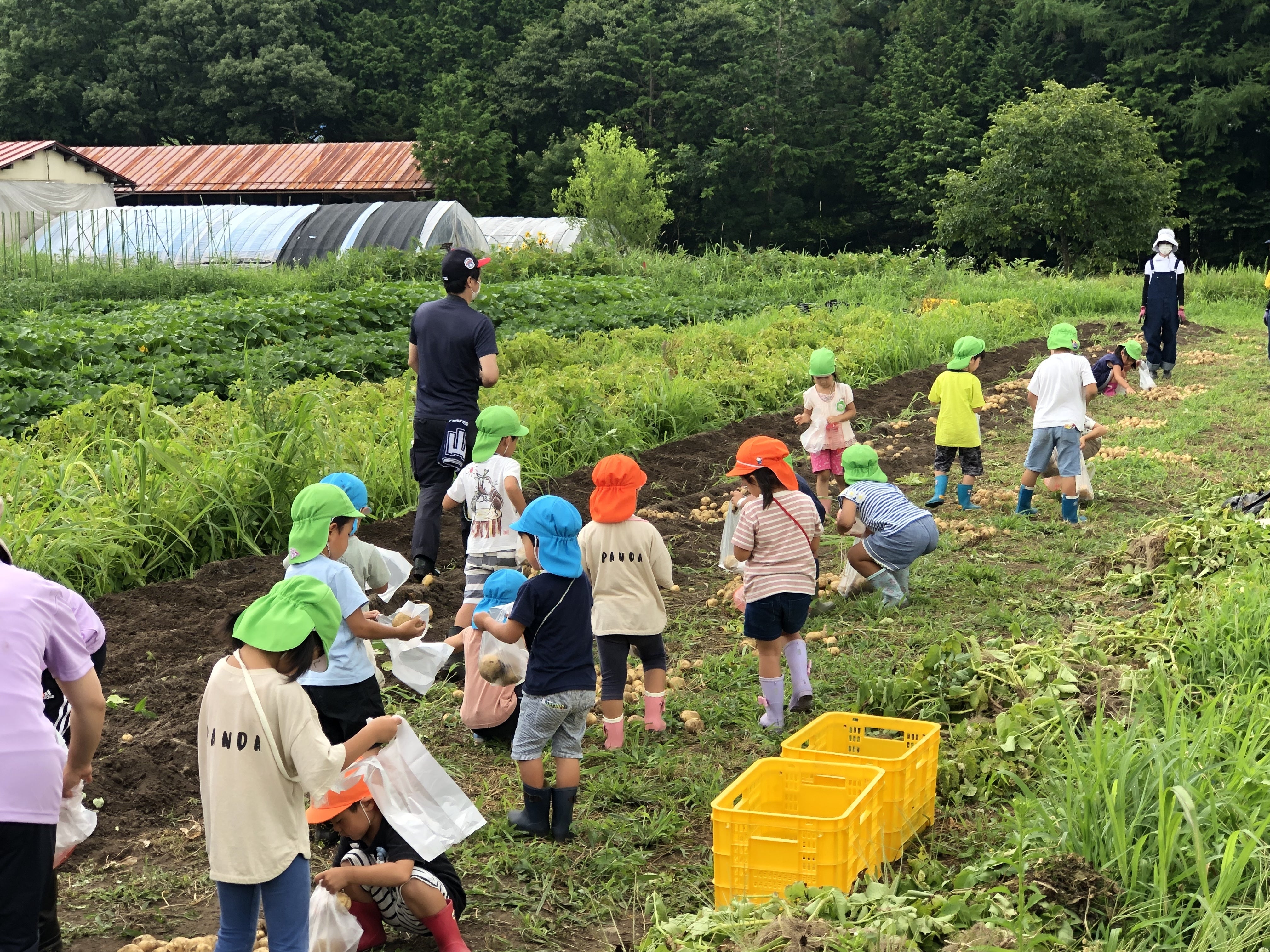 7月27日火曜日9:00から、すみれ朝日農場にて、朝日保育園の園児さんと、じゃがいもの収穫を行いました!きたあかり約150株を、約1時間かけて収穫!園児さん達も懸命に茎を引っ張ったり、土の中からじゃがいもを掘り出していました!収穫したじゃがいもをおみやげに袋いっぱいに入れていました^^収穫の間に、園児さん達が農場を目一杯駆け回り、かえるさんや虫さんを捕っていました!毎日少しずつご支援の輪が広がっていくのを感じています!本当にありがとうございます!私たちの挑戦は始まったばかりですが、少しずつ歩んでいます。諦めず、さらに前進して参ります!