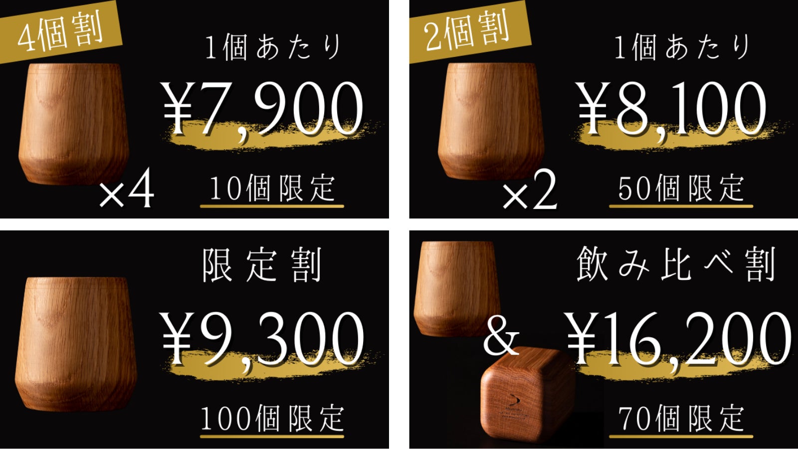 前回のMIJMOJオークタンブラーとの飲み比べが楽しめる、2種類のタンブラーの「飲み比べ割」もございます。