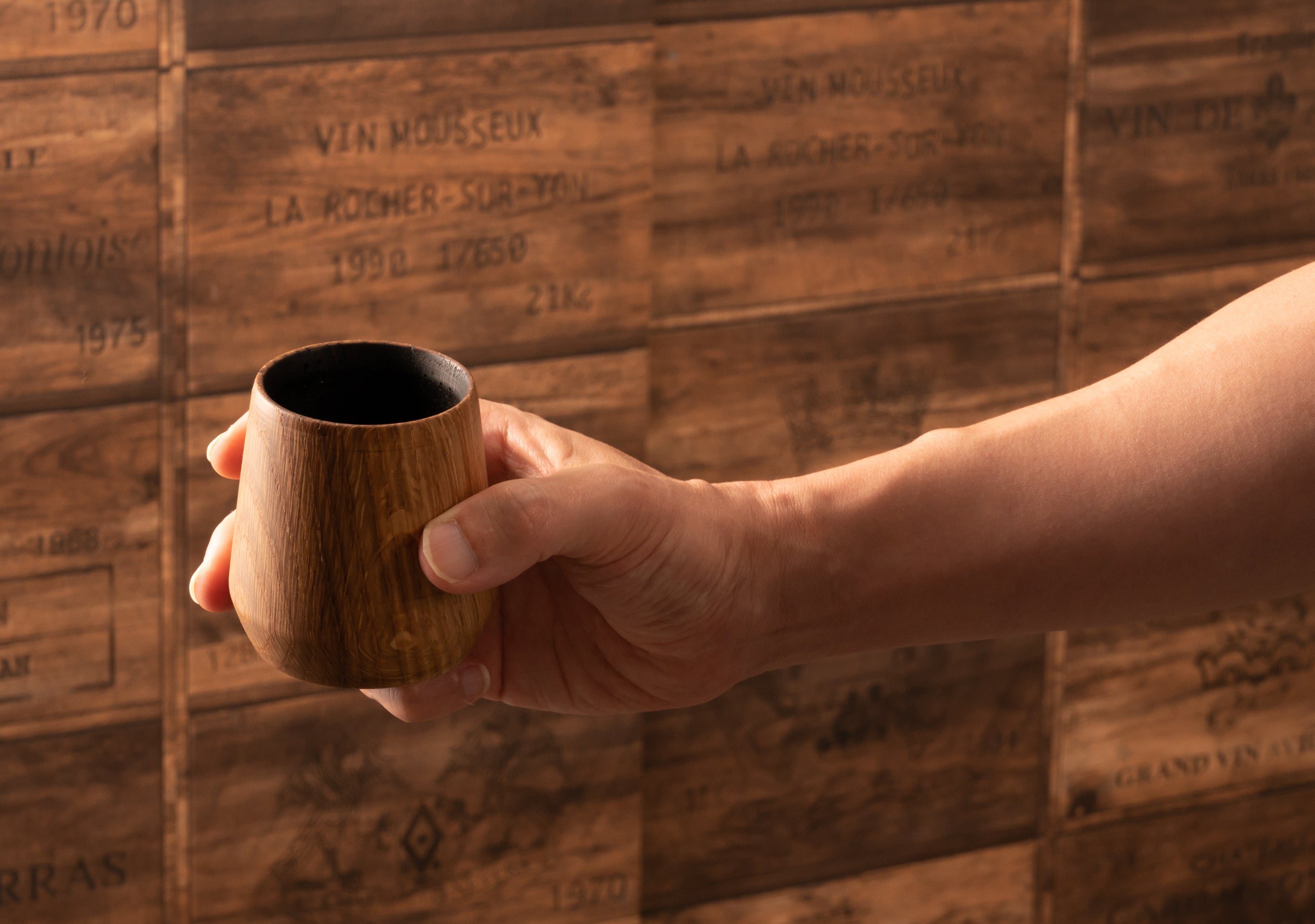 ウイスキーに香りが移るだけでなく、口元へ近づけた際にダイレクトにオークの香りを感じられることも、オークそのものでできたタンブラーならではのメリット。