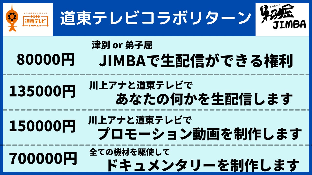 弟子屈JIMBAからのリターンはもちろんのこと。今回の一連の活動に賛同いただきました道東のインターネットメディアの道東テレビさん、そして、町内の事業者の皆様からもたくさんのご協力を頂きました。