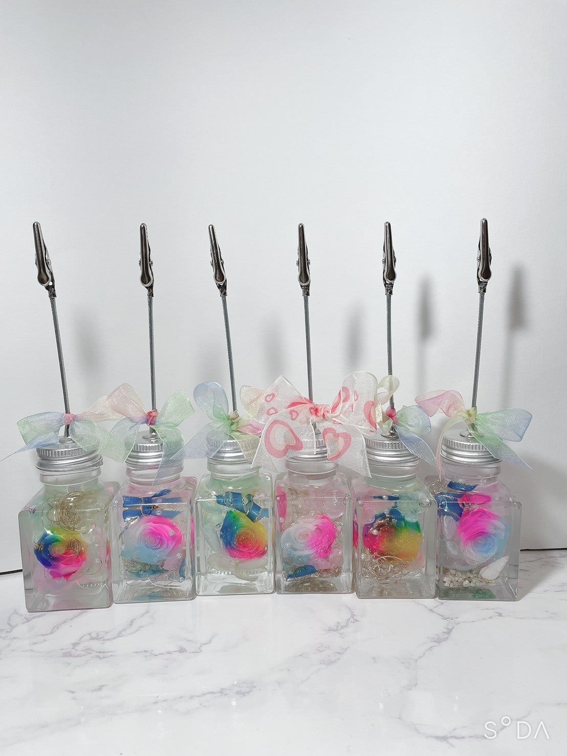 ■夏をイメージしたトロピカルに染めたローズを使用したハーバリウムメモスタンド