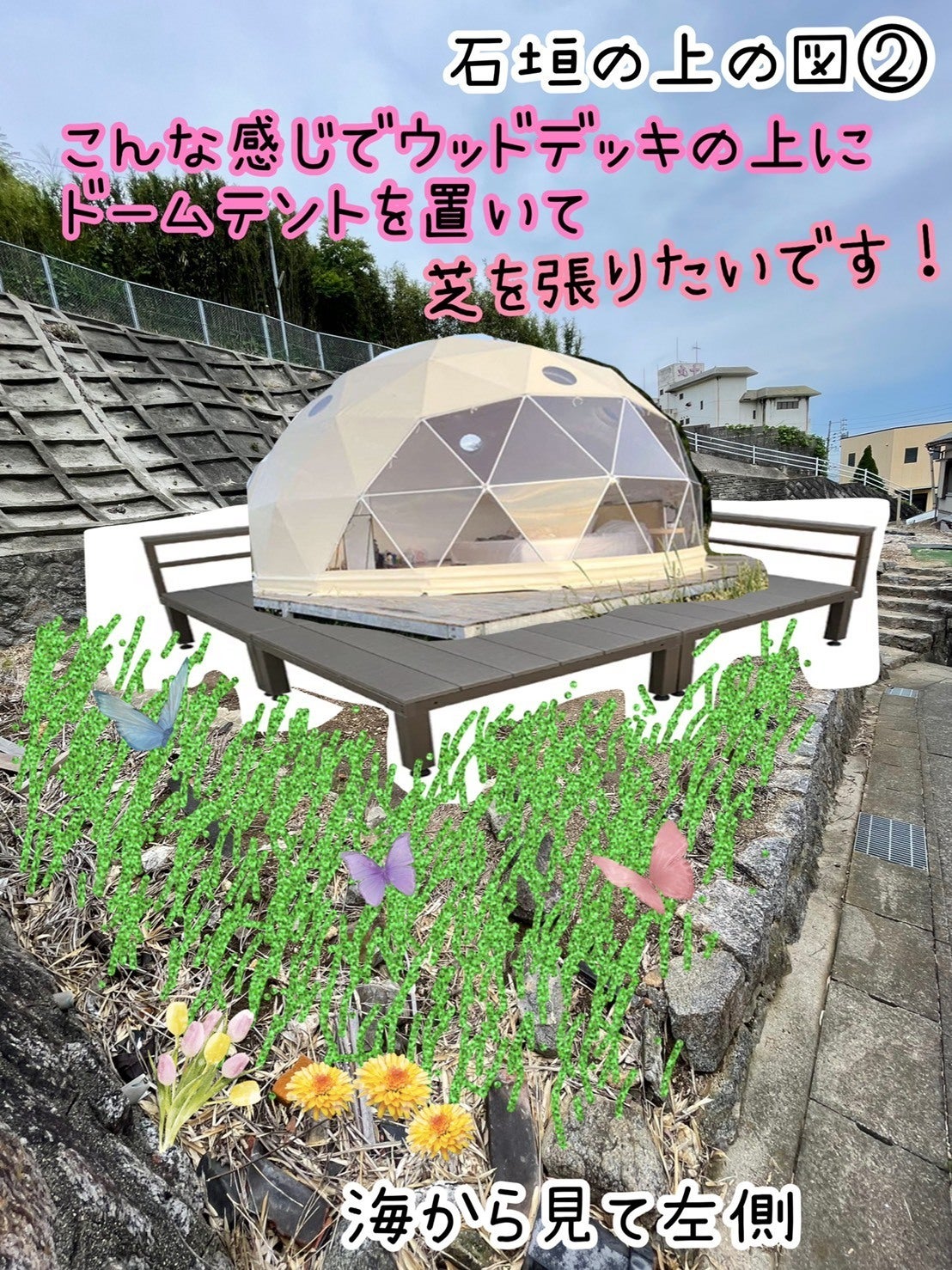 理想は、その周りにヤシの木を植えて、プールや日陰となるガゼボ、デイベッドソファーやテーブルなどをおいてバリ風にしたいです!