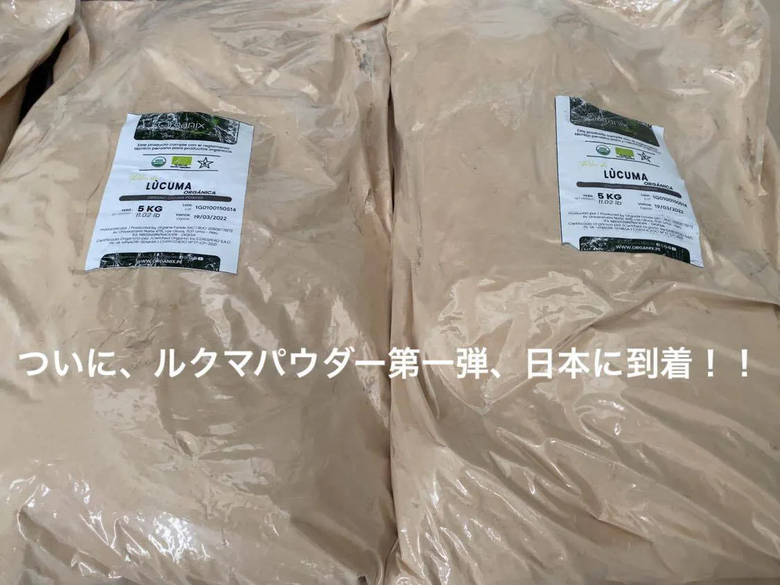 そんな素晴らしいルクマを日本国内に流通させるべく、現地JETROの協力のもと、ペルー国内で粉(パウダー)に加工する工場約60社から、オーガニック認証を得ている工場に6社に限定の上、サンプルを取り寄せ、最終的に自力で1社とダイレクト契約を結ぶまでに至りました!調査から調達まで数ヶ月に及びましたが、これでルクマの安定供給に向けた生産を維持することができます。