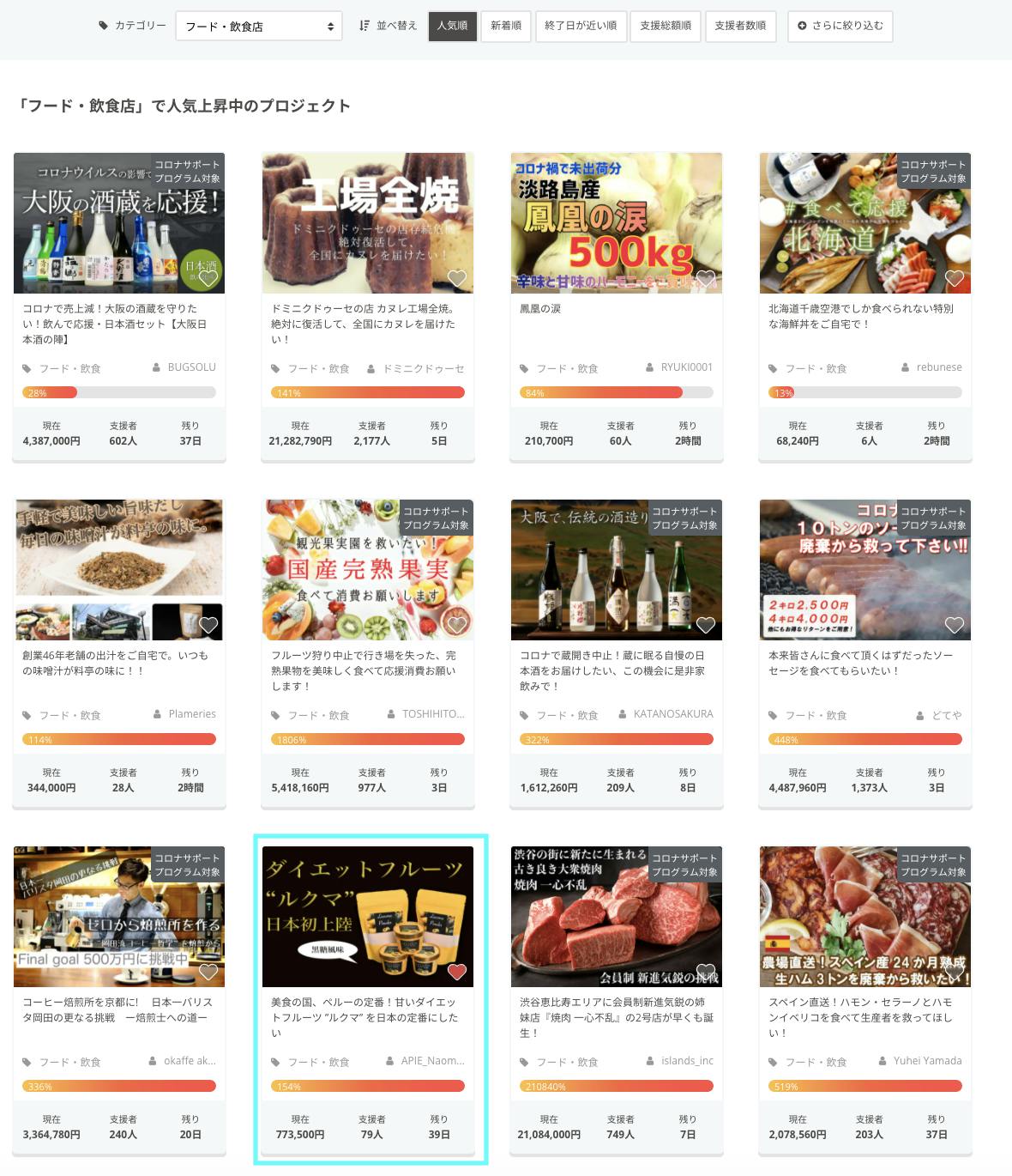 ”人気上昇中”のプロジェクトのトップページに反映されるようになりました!