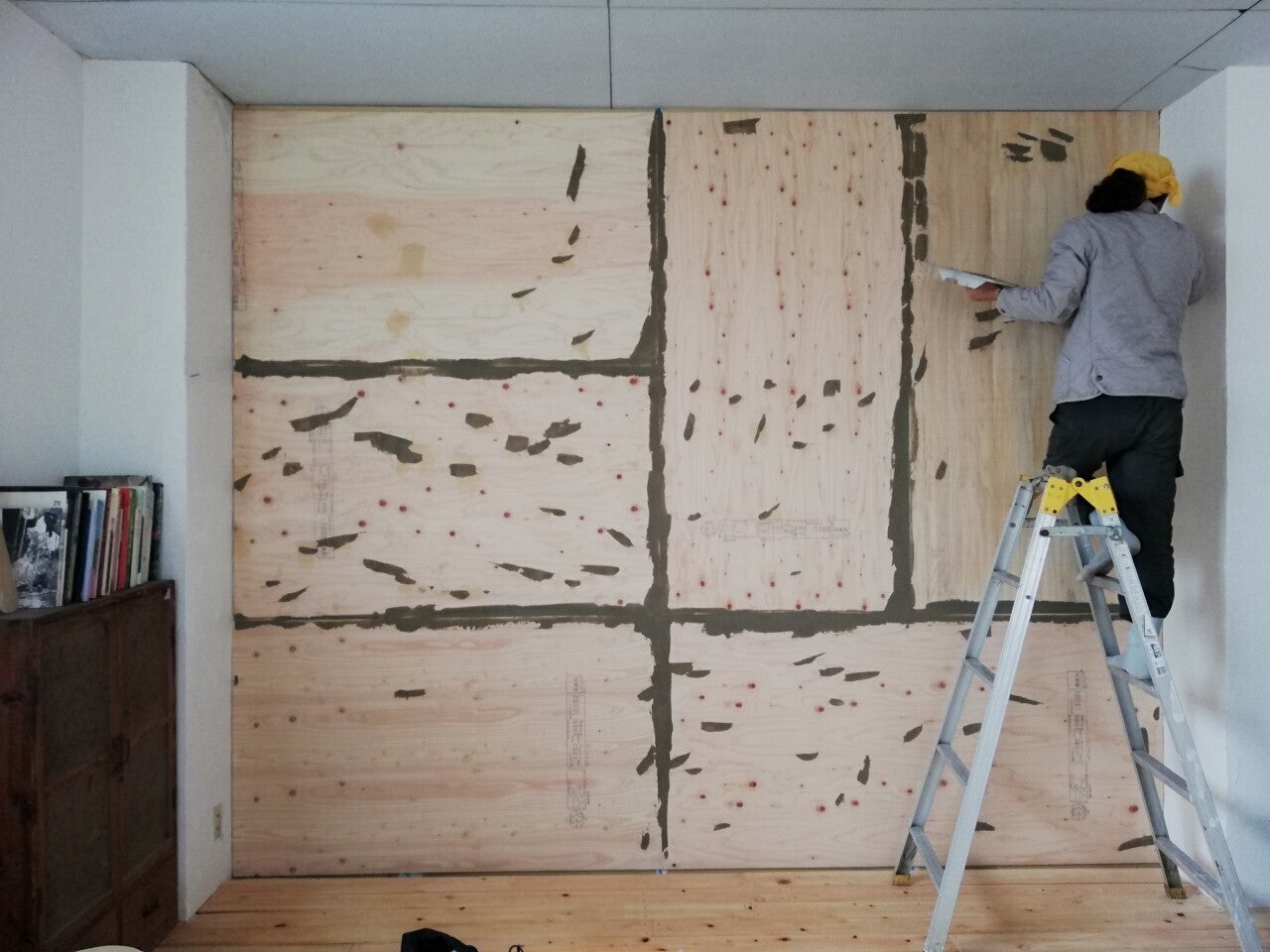 床を貼って壁をつくり、大部屋、キッチン、工作室、図書室…と、作っていきました。