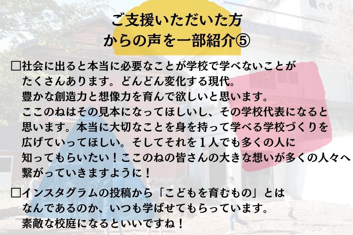 この度は、心からのご支援をいただき、本当に本当にありがとうございました。最終日になるときまで、ここのねの未来のために私たちは走り続けます。
