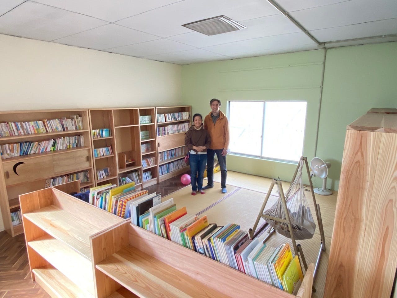 2021/11/29 12:00ここのねの中で知識の中心となる場所、それは図書館です。本を読むことは世界を広げること。だからこそ、子どもたちには本を読む楽しさを知ってもらいたい。しかし開校当初の図書室(本棚)が微妙すぎる・・・・。の状態でした。お酒のケースで作った本棚そこで保護者の方と協力し、10ヶ月の期間を経てここのね図書室の本棚が完成いたしました。図書館(本棚)を制作してくれたのは、木工作家兼ミュージシャンのピーターさん。そして、そのサポートをしてくれたパートナーのまりこさん。写真左:まりこさん 写真右:ピーターさん今回の本棚作りは、彼の中でも一番大きなプロジェクトだったそうです。本棚の組み立ては、ほとんどのパーツが釘やネジを使わずに木組みで作られました。戸をひいたときに、左戸が右戸の持ち手にぶつからないようにレールにストッパーをつけるなど、子どもたちへの気遣いや本を読むことへの工夫は至る所から感じることができます。あなたのブラウザはhtml5 videoをサポートしていません。今回の本棚プロジェクトは、保護者の方からの提案で始まりました。今までここのねに並んでいた本棚は、お酒のケースと板を積み重ねて簡易的に作られてた仮の本棚。ワクワクするような場所作りはこどもたちの好奇心を刺激し、多様な活動がここのねで生まれることを感じてきた2年間。私たちスタッフにとって、本を読むことは世界を広げること。だからこそ、子どもたちには本を読む楽しさを知ってもらいたい。けれど、図書室(本棚)が微妙すぎる・・・・。の状態でした。だからこそ、保護者の方に提案してもらった時は、本当に嬉しかったのを今でも覚えています。そして次に本棚をどんな人に作ってもらいたいかを話し合いました。自分が大事にしたかったのは「ユーモアがあって、温かいものづくりを実践している人」ただそれだけでした。そこからピーターさんを紹介してもらい、打ち合わせを重ねていきます。*自分の思い描く本棚のアイデアを共有したり*本棚に使用する木材の種類を検討したり*考えてもらった設計図を見ては、もっとこうしては?と良いアイデアを付け加えたりそして、実際の制作では、大きな本棚を数回に分けてパーツを運搬し、保護者のパパさんやスタッフのパートナーさんにも組み立ての補助をしてもらいました。お忙しい中、サポートしてくださったこと、心から感謝しております!そして、約10ヶ月という長い月日を重ねていき、とうとうピーターさんの想いがたくさんこもった本棚が完成することがけていきました!本棚が変わったことで、子どもたちの読書量は驚くほど増えました。環境が与える影響って本当に大きいのです。すべての子どもが最初から本が好きなわけではありません。そんな時、私たち大人にできるのは、カリキュラムの中に読み聞かせや読書の時間を作ったり、本をすぐ手に取れるような環境を整えてあげることです。本がそこにあるだけでは、本はただの紙になってしまいます。「環境が変われば人は変わる」もっと子どもたちがワクワクするような場を、制限のある元酒蔵というこの場をさらにクリエイトしていきたいと思っています。そのためにセカンドゴールのトイレの新設まで、なんとか実現したい!と考えています。残り半分、最後までよろしくお願いいたします! もっと見る