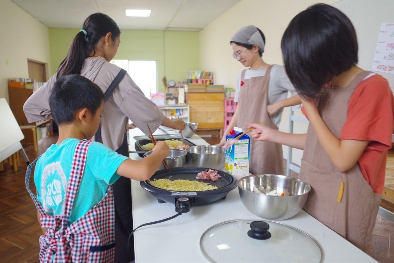 みんなでお昼ご飯を作る、月に一度の『調理実習』の日。異年齢のグループで助け合いながら作る様子は、なんとも微笑ましいです。