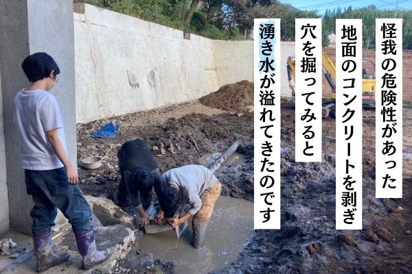 建物の基礎部分を掘り起こした時、地面から水が湧きだしてきたのです…!