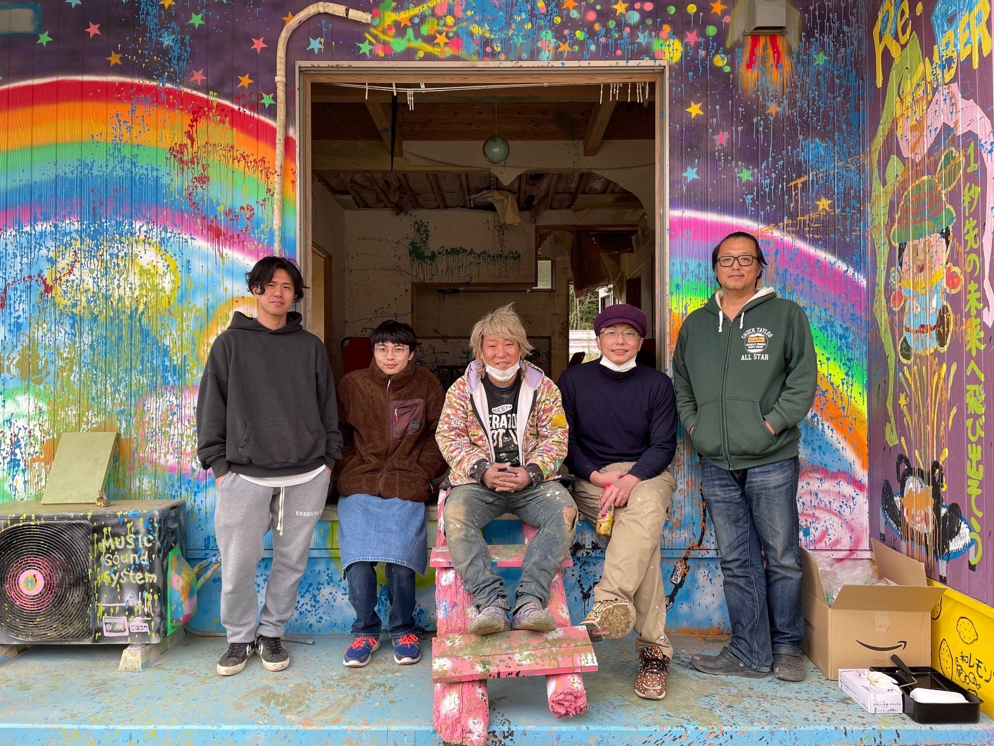 前回は解体の決まった村営住宅3棟の壁と、被災した家の擁壁部分にアーティストと子供たちで絵を描きました。村営住宅はそれぞ別々のアーティストが担当し、それぞれ趣向を凝らしました。例えば、ゲーム『スプラトゥーン』のように水鉄砲の中にペンキを入れ住宅の壁にペンキを打ったり、子供たちの手形を木々の花びらや葉っぱに例えて球磨村の四季を表現したり・・・子供たちは自らが汚れることも気にせずに笑顔で作品を作っていました。