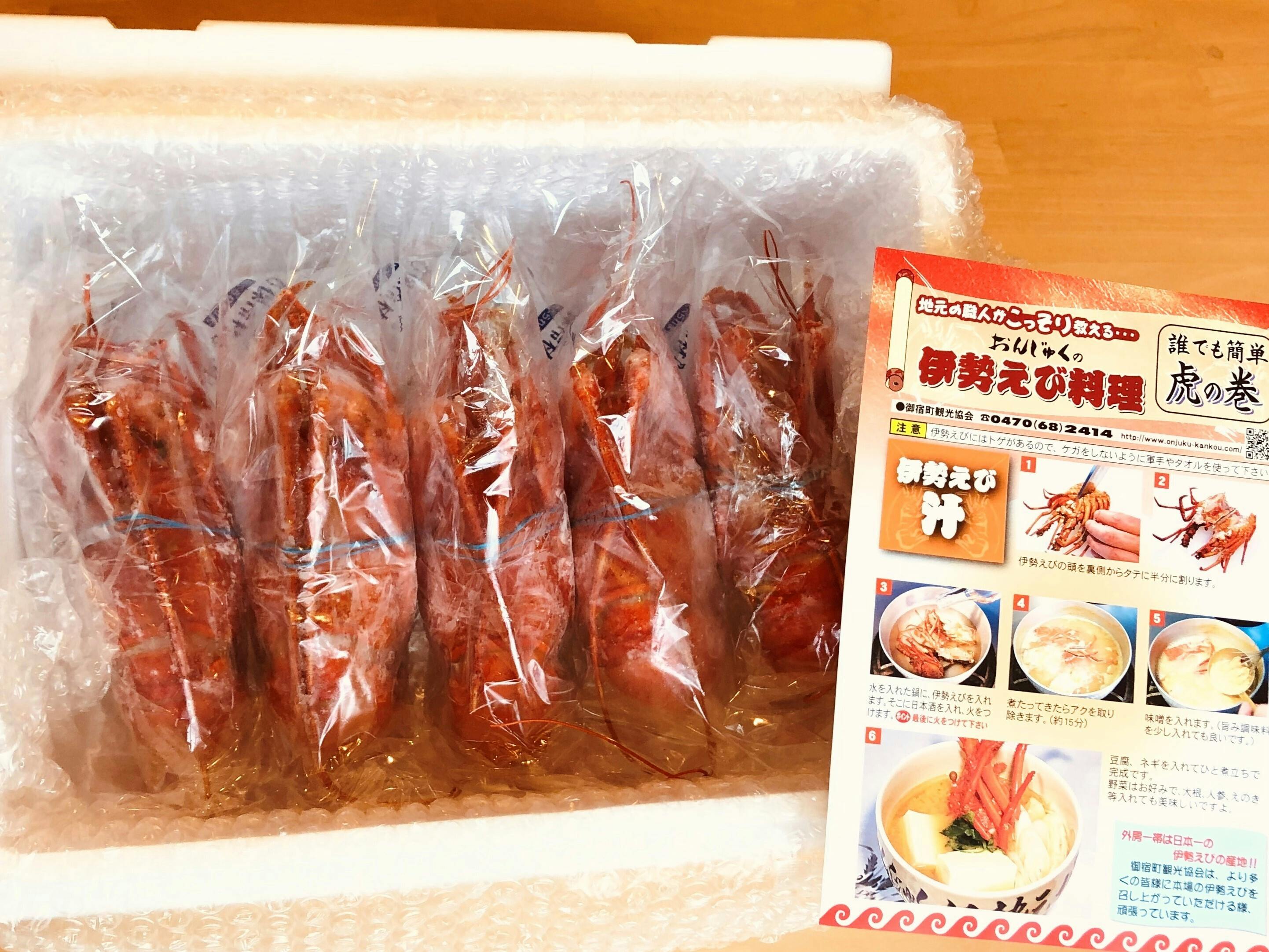 ・伊勢エビセット 御宿の誇る名物、伊勢エビをボイルした状態でお届けします。外房の伊勢エビは、絶品です。ご堪能ください。ご協力金額によって2尾セットと5尾セットがあります(写真は5尾セット)。