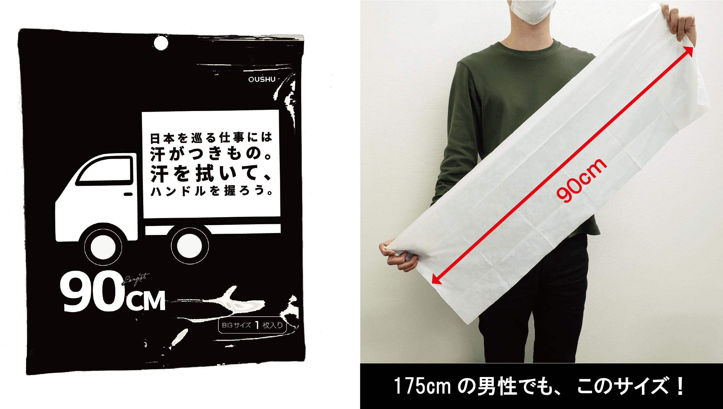 長時間の運転で汗をかいても、全身をふき取れる90cmのボディシートがあればもう安心です。