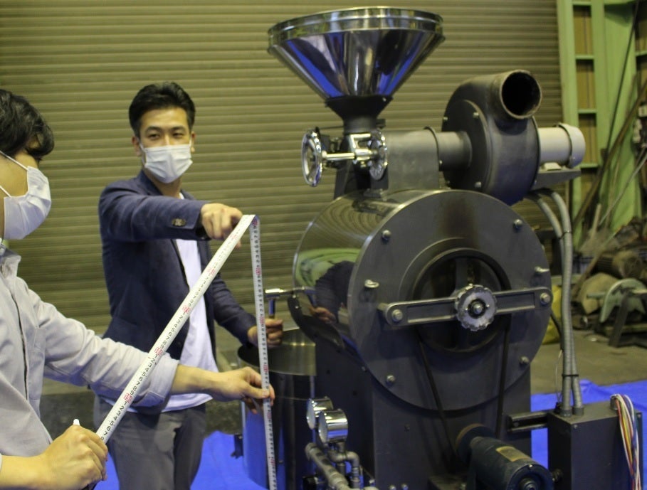 焙煎機のカスタマイズを打ち合わせ中(富士珈機様工場にて)