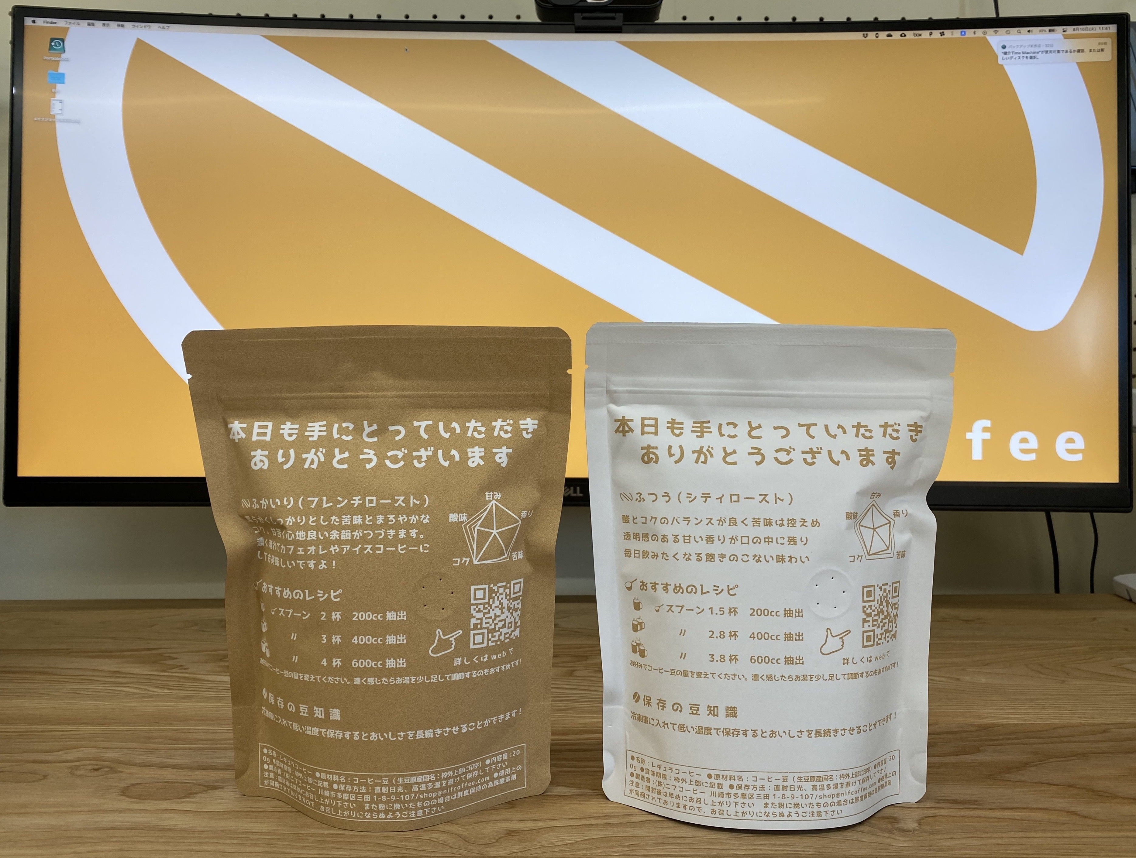 日東理化さんでは印刷業者で製袋後、破裂防止の逆止弁(ワン・ウェイバルブ)の取り付けを行い、当焙煎所へ納品していただいてます。