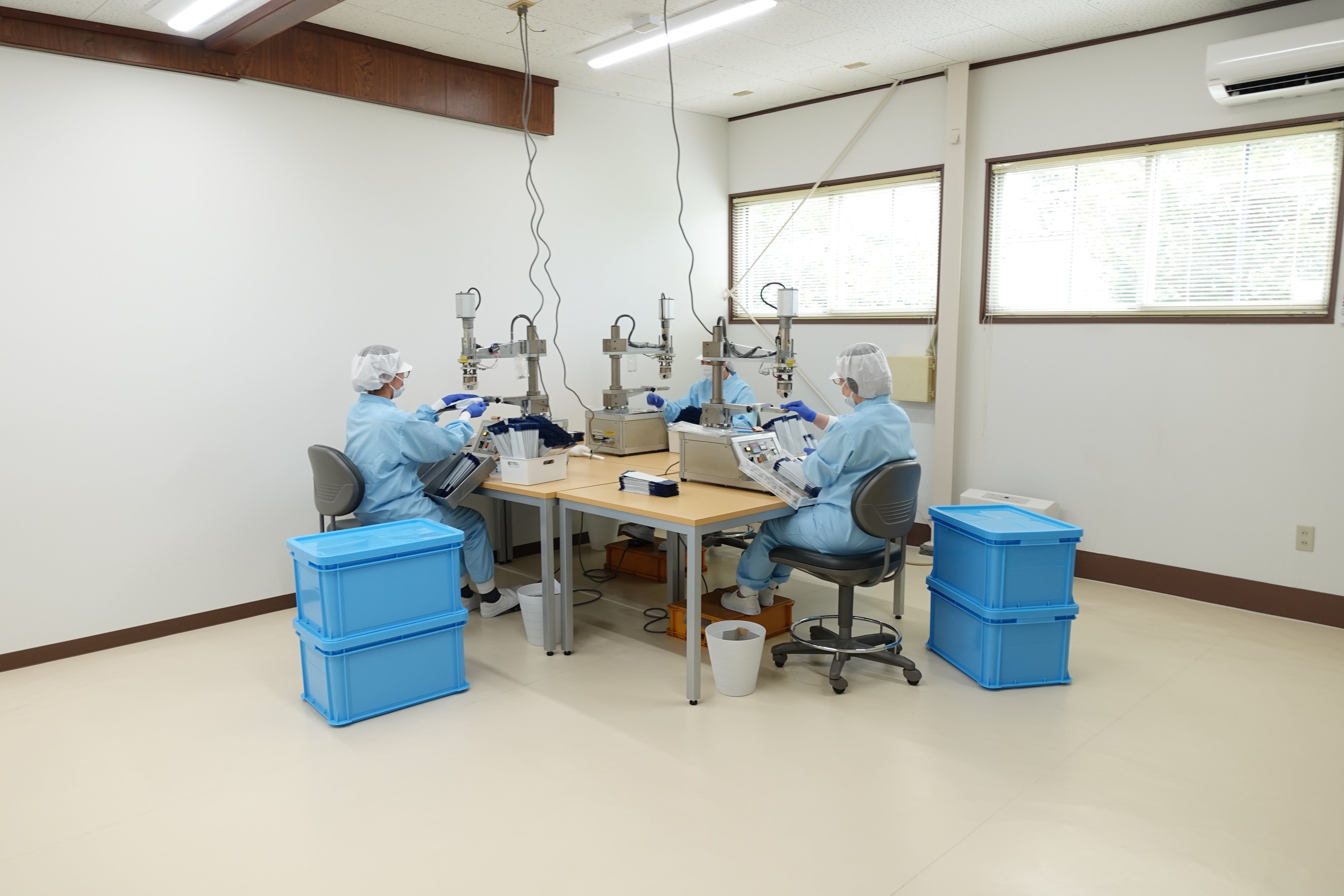 代表の黒堂さん、担当の菊池さんお二人の細かな部分まで配慮と管理が行き届いている素晴らしい作業場でした。