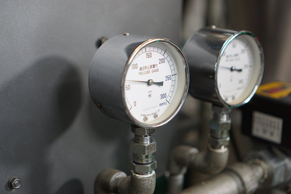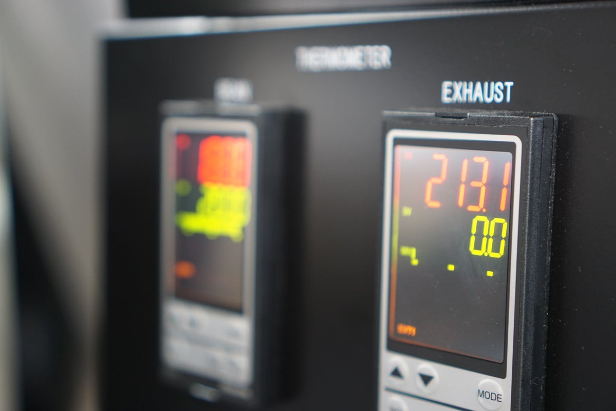 シリンダー(焙煎釜内)の温度計と排気の温度計