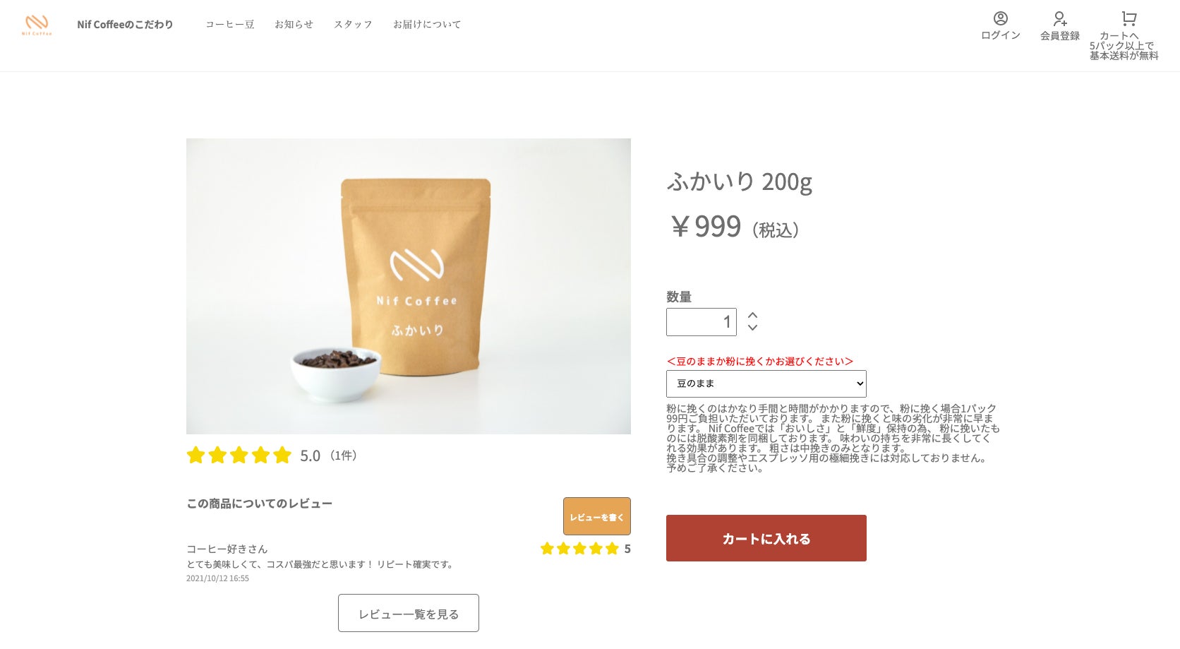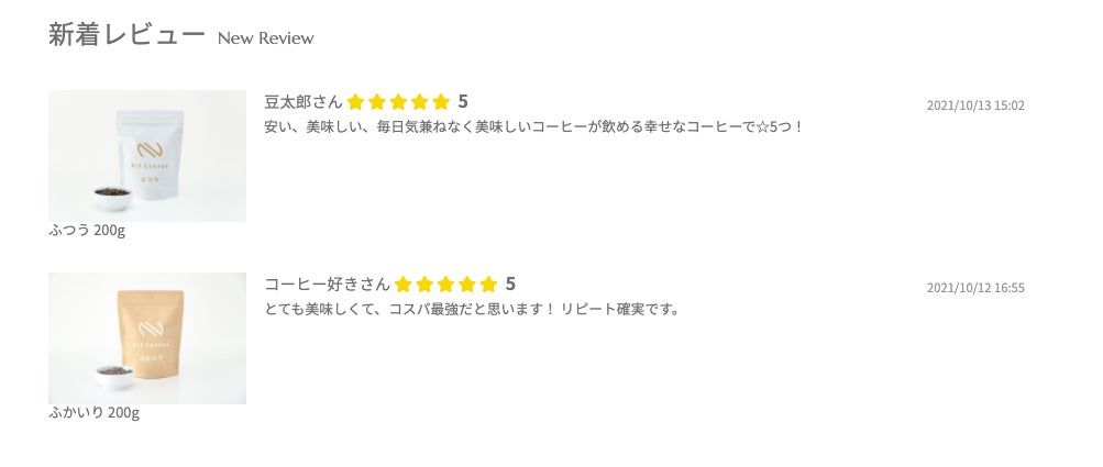レビュー機能は実店舗を持たないNif Coffeeにとってお客様の感想などが聞ける貴重な機能だと考えています。