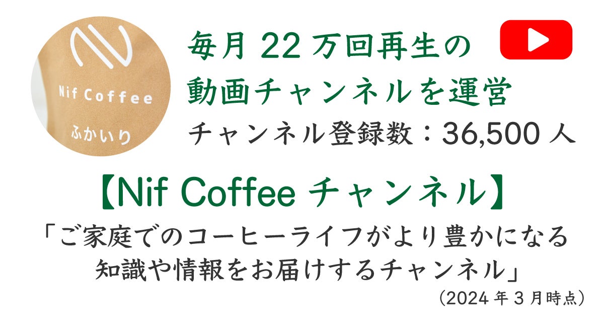 Nif Coffeeは3年目となりました。累計販売数量は9万パックを超え、川崎市のふるさと納税への登録、コーヒーのムック本で2024年のベストバイに選ばれる、公式YouTubeチャンネルの登録者が3万6000人を超えるなど着実に成長しております。