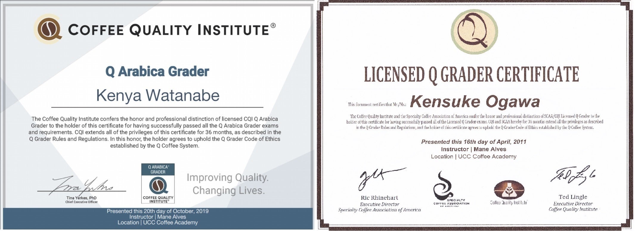 ※渡邉・小川ともに「Qグレーダー」という、国際的な業界団体が定めたルールに則ってコーヒーの品質評価ができる資格を10年以上前から取得していますので、生豆の選別技術についてもお墨付きです。