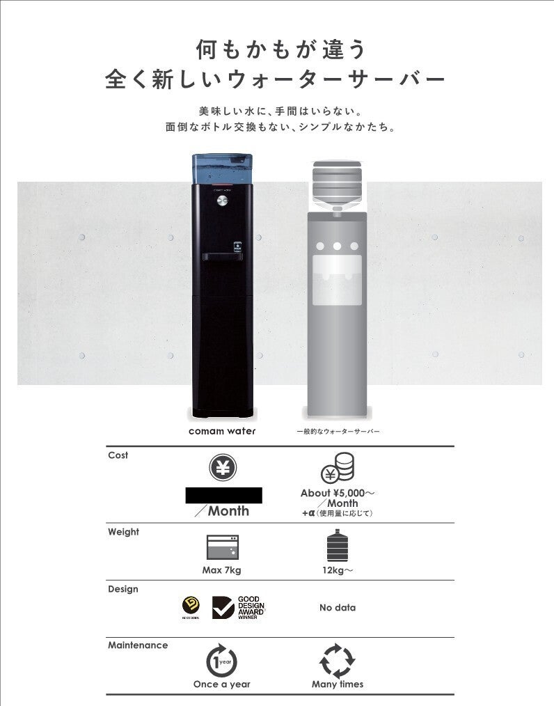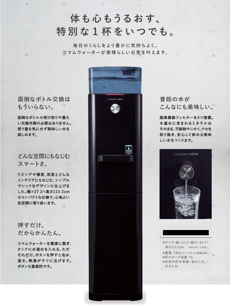 「comam water」製造国である韓国では50%以上の世帯が生活で使用しており、賃貸物件に標準で付いているところも多いようです。