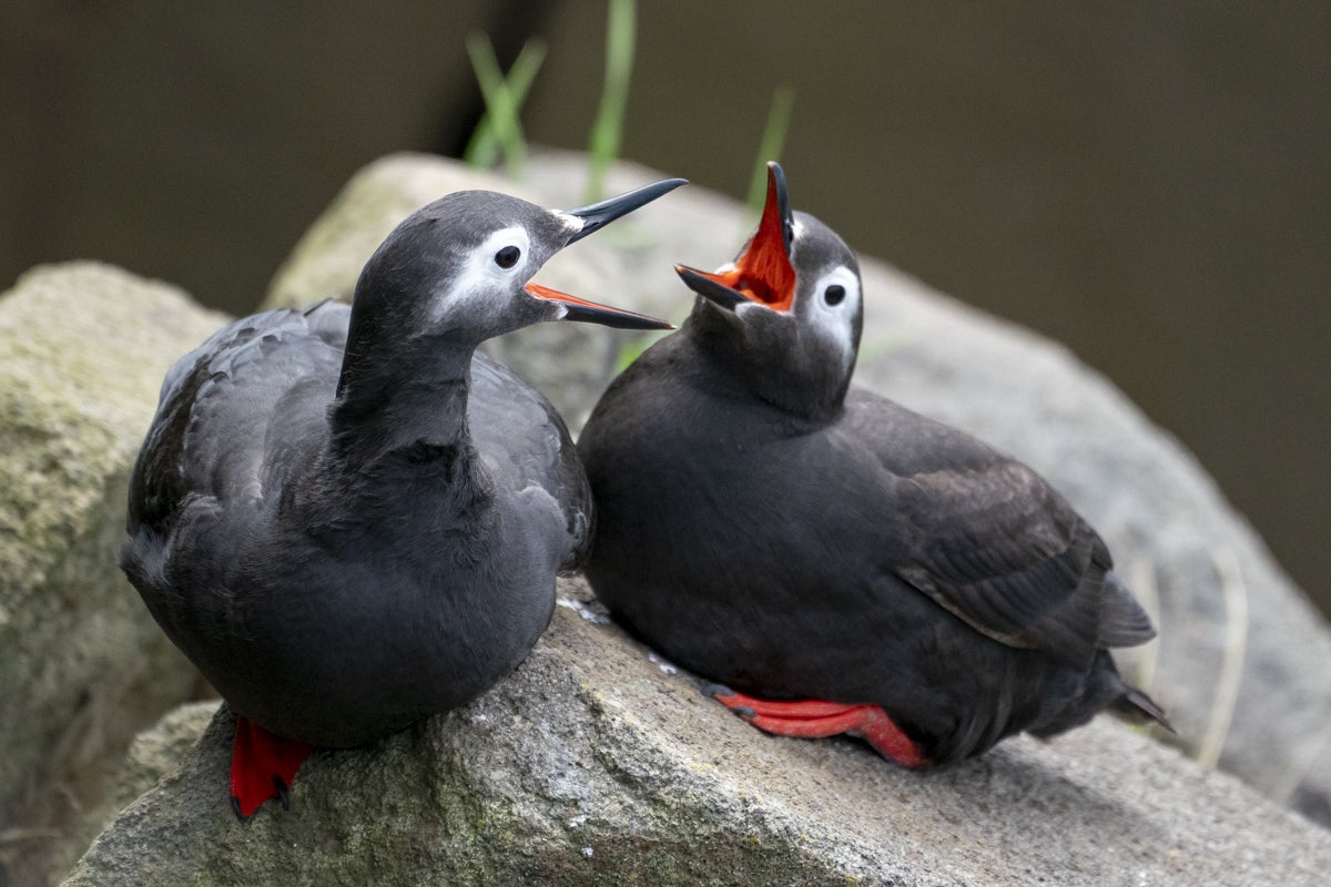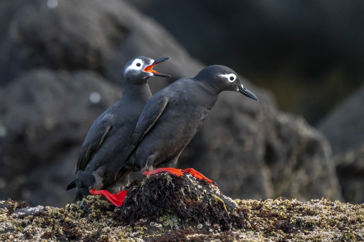 ケイマフリのペア ペアの愛情が深く、スタイリッシュで運動能力に優れ、海のカナリアと呼ばれるほどの美声を持つ海鳥がいます。世界でも北海道周辺にだけ生息するケイマフリです。黒・赤・白の組み合わせで、これほど美しい鳥を創造できる芸術家がいるでしょうか。その国内最大の繁殖地が天売島なのです。天売島は北海道の日本海側北部に浮かぶ周囲12キロメートルの島で、約250人が住む漁業と観光の島です。
