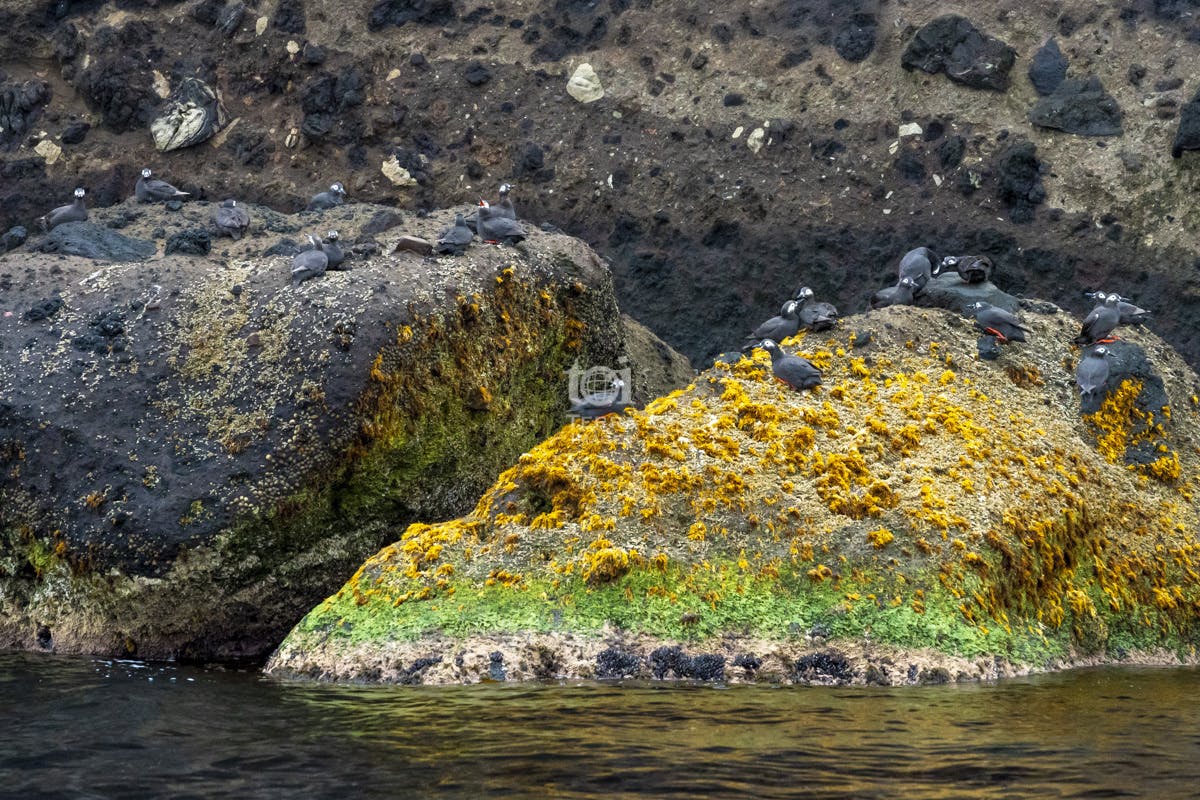 朝6時に出港した「ケイマフリ号」は、高さ100mの断崖が4kmにわたって続く西海岸へ。すると岩の上には多数のケイマフリが佇んでいました。参加者たちは、その風景をボート上から静かに観察・撮影し、一期一会の絶景を記録に残すことができました。