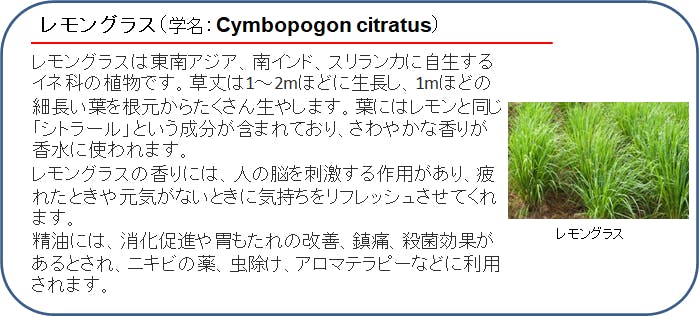 レモングラスには「シトラール」という体にいい成分が含まれています。
