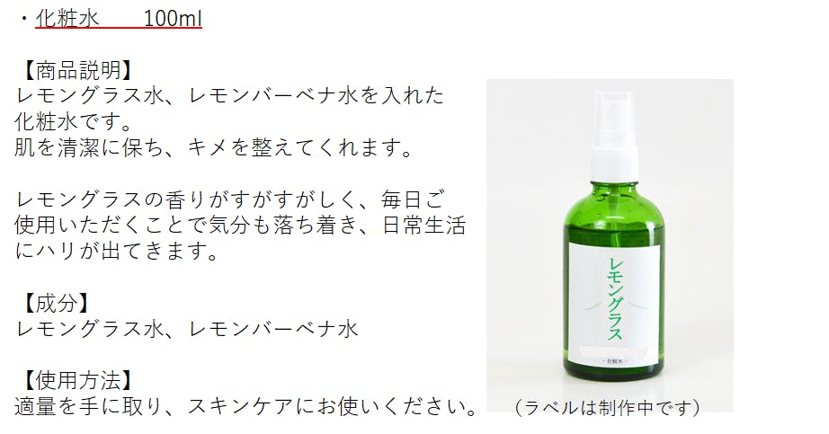 スキンケア商品が今までありません。レモングラスでスキンケア商品を作れないか!?