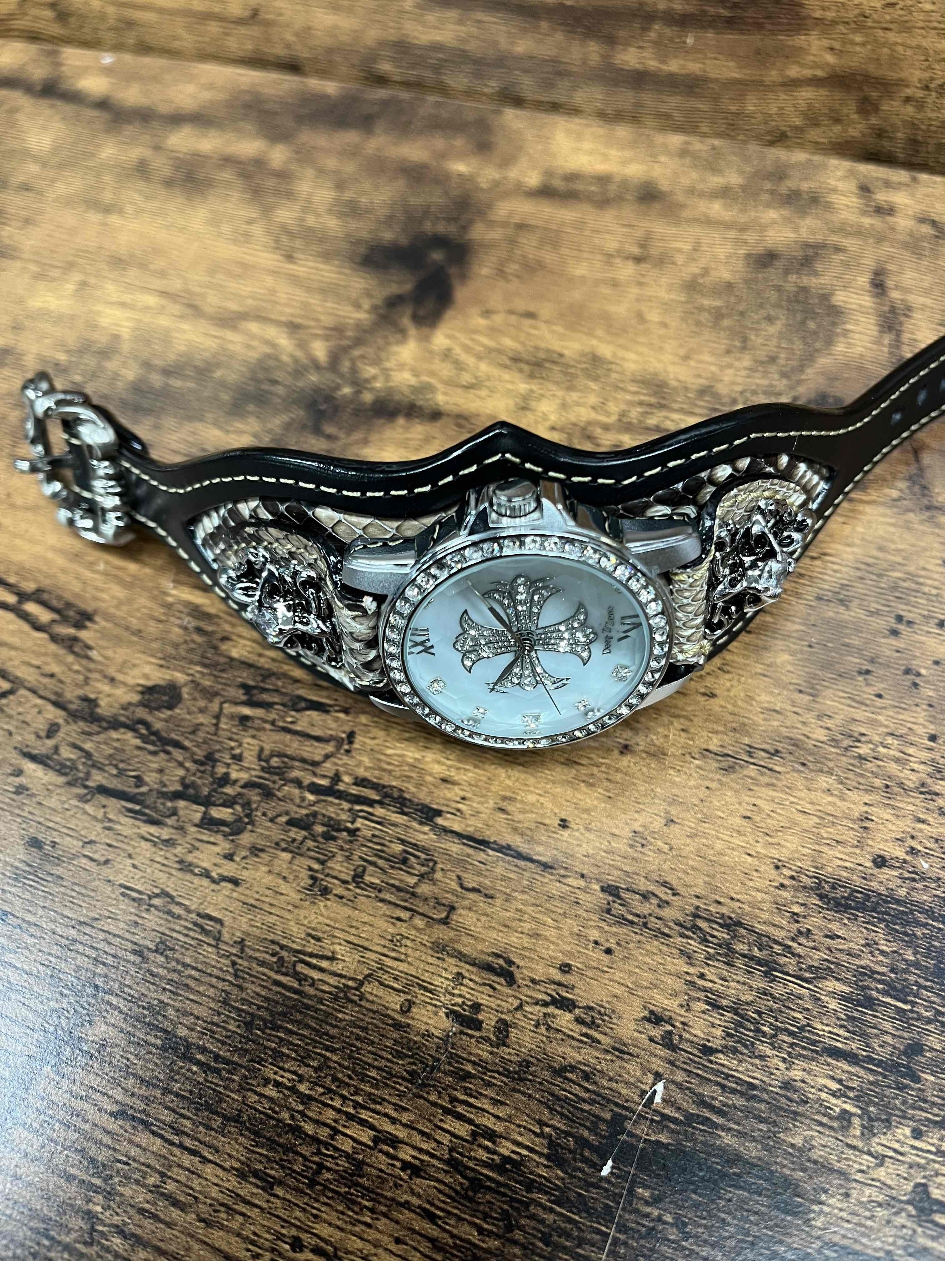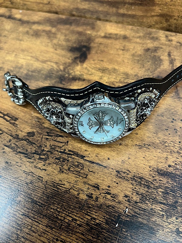 ピューター製のクロスコンチョをあしらい本革のベルト(イタリアンレザー)と
