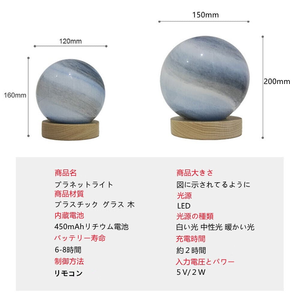 今回の商品はプラネット型のデスクライトになります。この商品色んなデータを採用し、リアルな月などいろんなプラネットの表面を3dプリンター技術で再現!月ライトは一体成型デザインで繋ぎ目もありません、底にあるわずか1センチの充電口で本体の充電、タッチ操作として機能します。3色切り替え可能:オレンジ色·温白色·自然光。柔らかな光で目にも優しい、長時間使用しても発熱しませんので、お子様にも安心に使用できます。