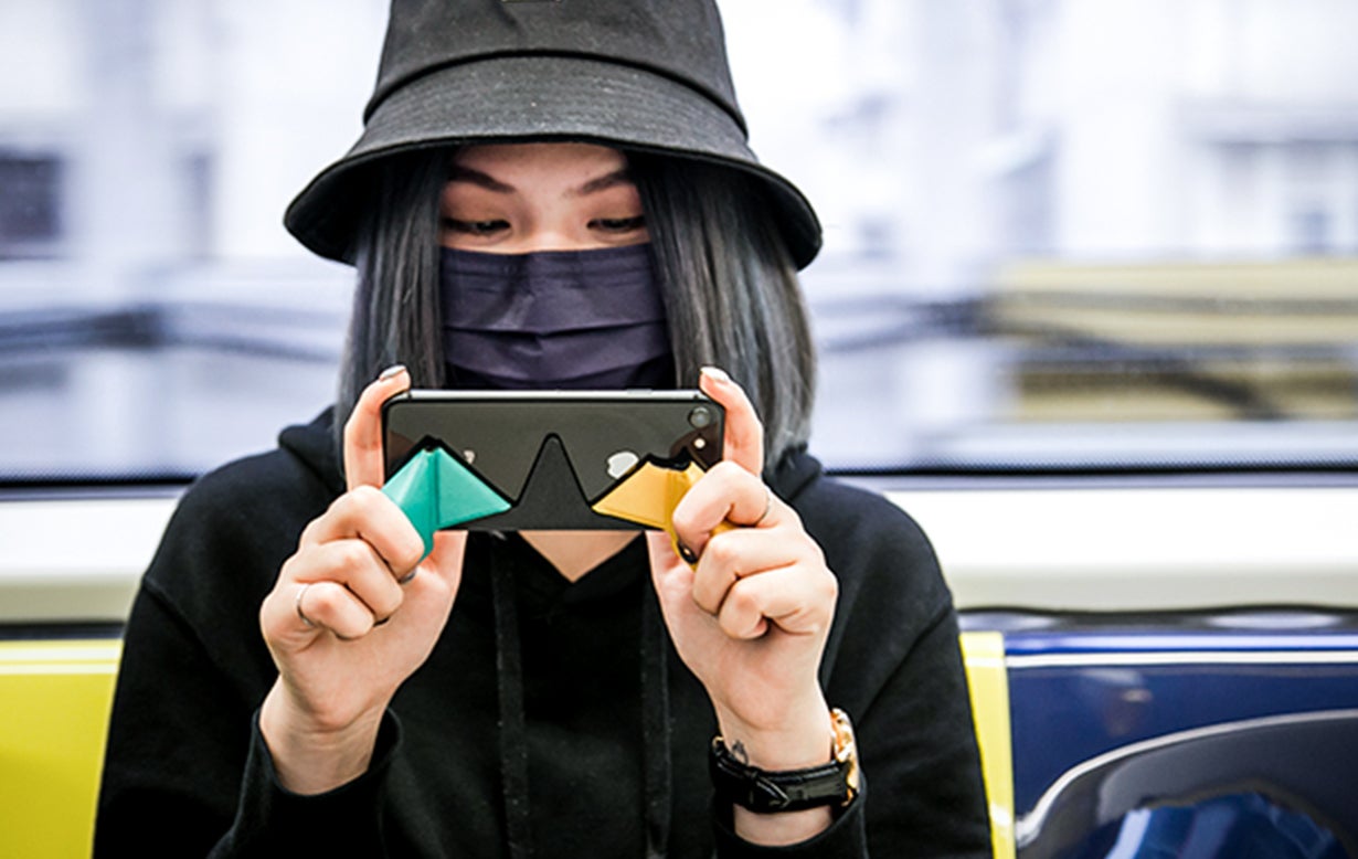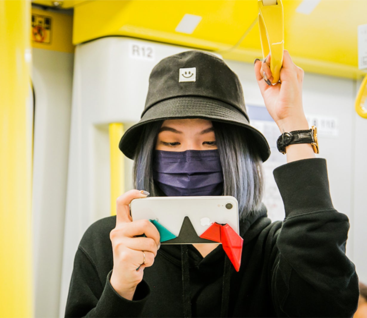 片方のハンドルだけを取り出して手で持てば、バスや電車で動画を楽しむ時も持ち手がラクラク。