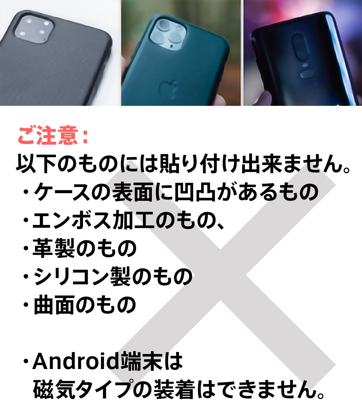 両タイプともスマホやケースにぴったりと貼り付き、操作中に脱落することはありません。