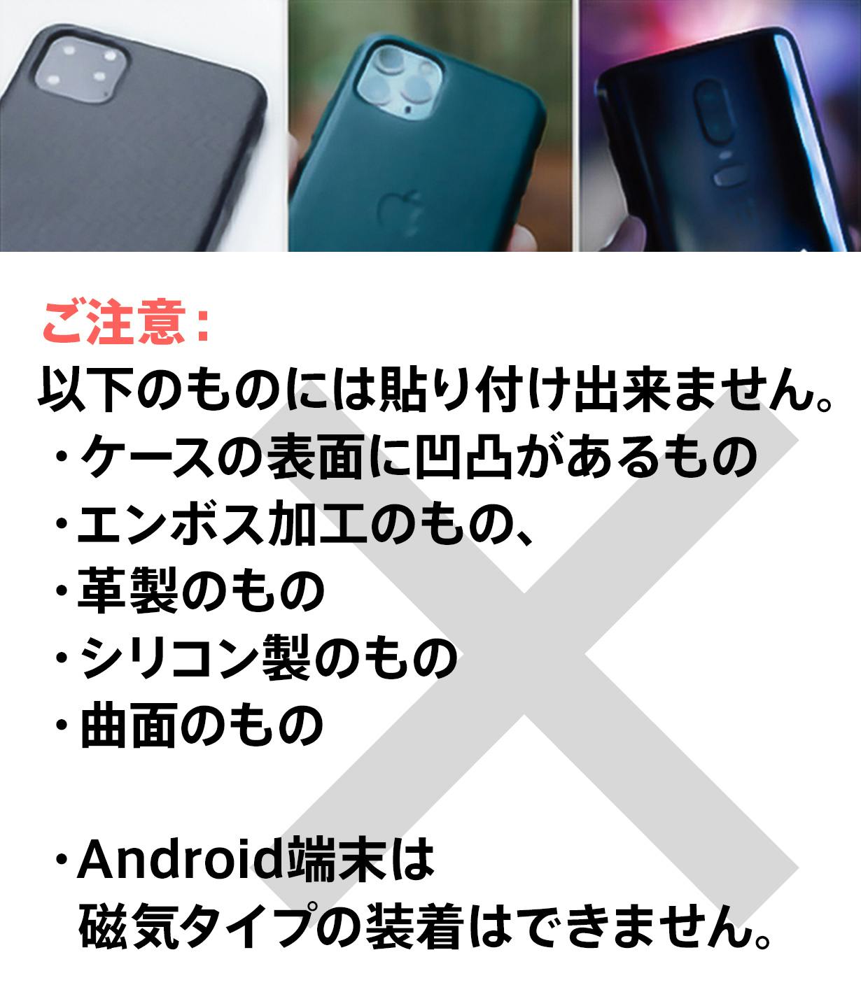 ポケットジョイパットでカメラレンズが隠れてしまう機種や指紋でのロック解除機能が裏面にある機種など、適用できないスマートフォンがありますので、必ずご確認の上ご購入の検討をお願いします。